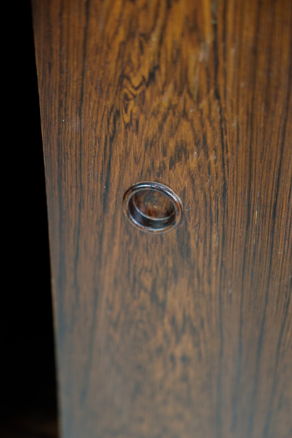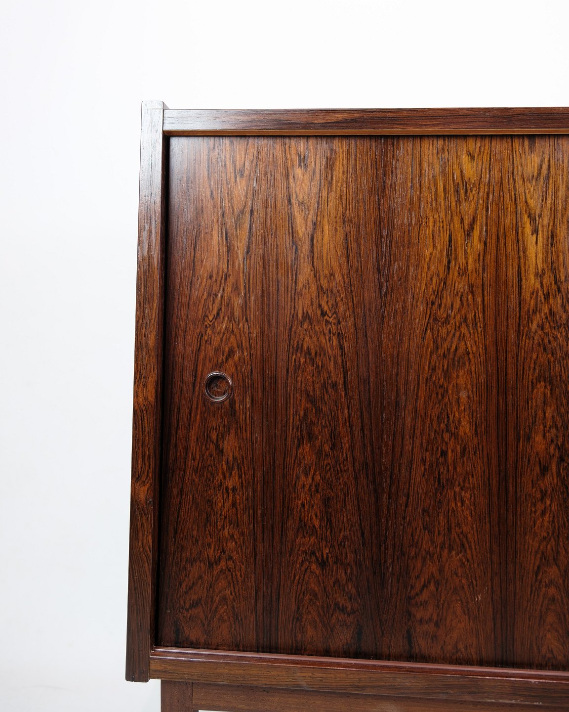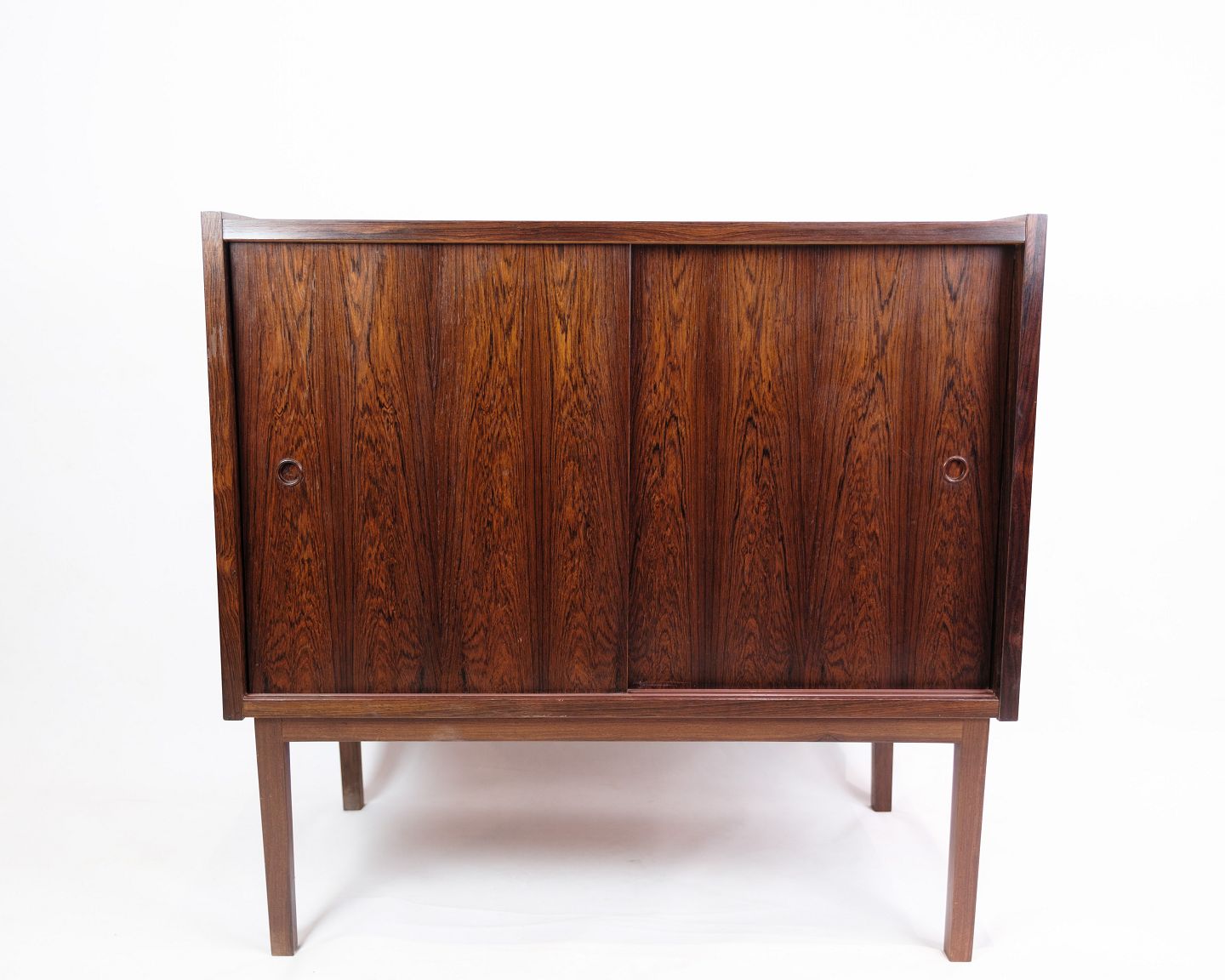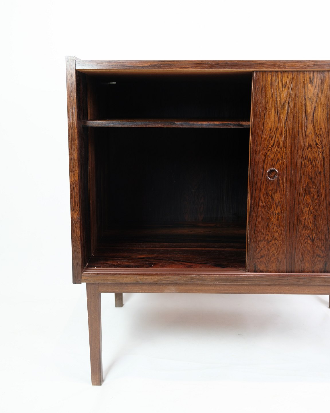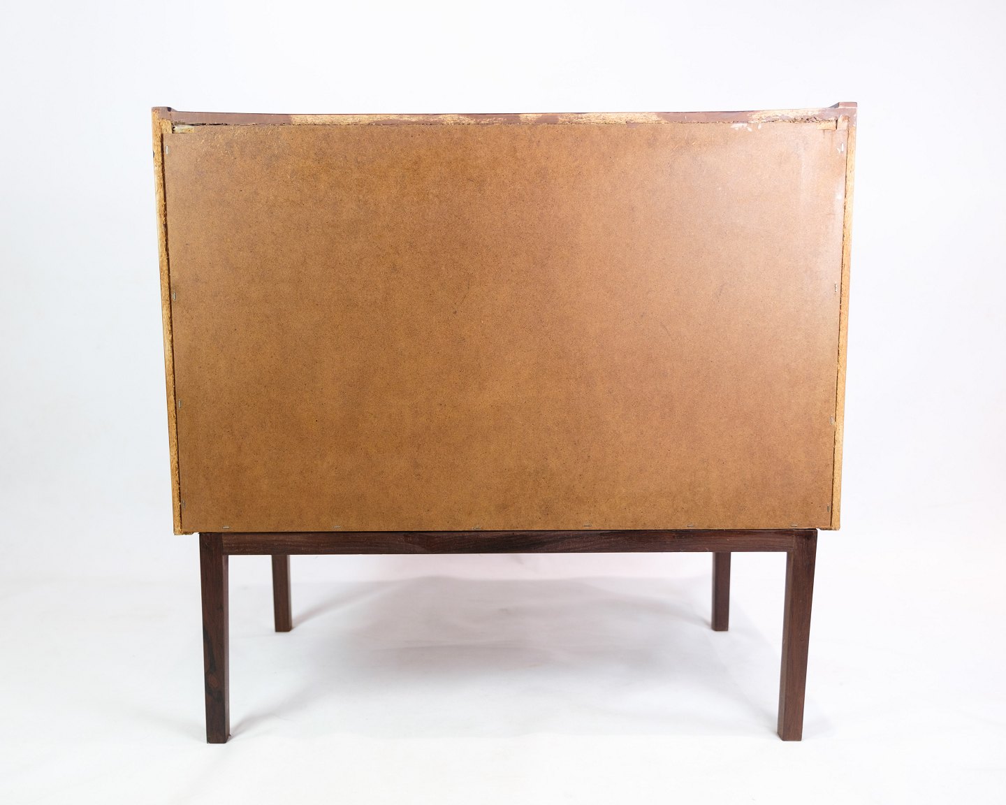 SoldThe small rosewood sideboard, of Danish design and from the 1960s, represents an era of stylish and functional furniture design. The rosewood, with its characteristic dark color and beautiful veins, gives the sideboard a unique and luxurious appearance.