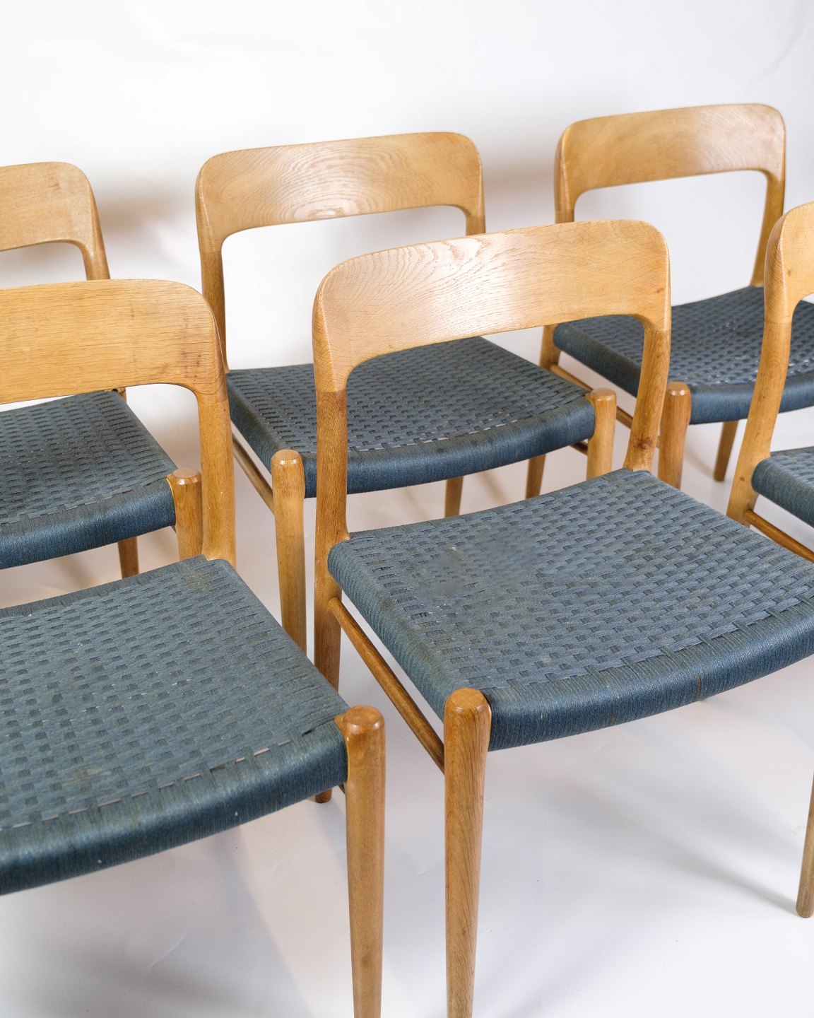 Sæt Af 6 Spisebordsstole - Model 75 - Egetræ - Papirflet - Niels O. Møller - J.L Møllers Møbelfabrik - 1960