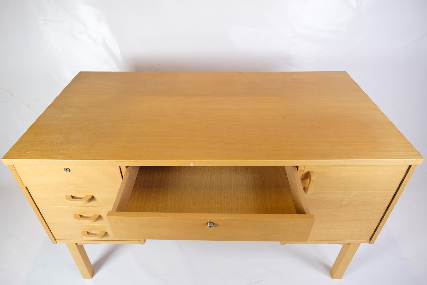 This desk is a great example of Danish design from the 1960s. Made from beech wood, it exudes a timeless elegance and simplicity that is characteristic of Scandinavian design. With its slim and functional design, this desk fits perfectly into modern as well as classic interiors.