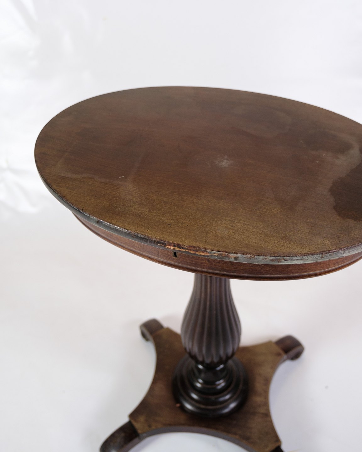 SolgtDette elegante sidebord er et smukt eksempel på møbelhåndværk fra det 19. århundrede, nærmere bestemt år 1890. Fremstillet af mahognitræ, udstråler dette ovale sidebord en tidløs skønhed og en varm, naturlig glød.