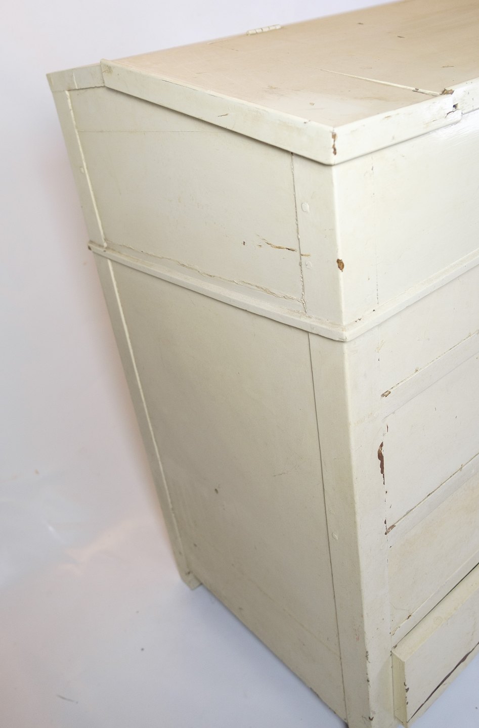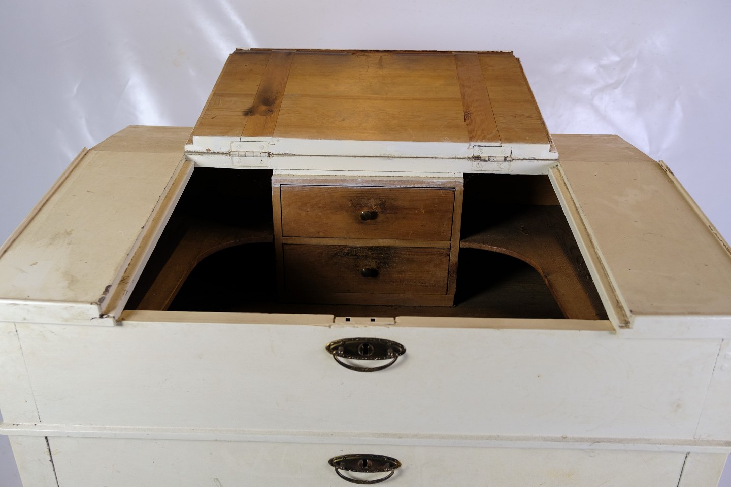 SoldThis antique dresser/desk from around 1890 is an impressive piece of furniture history. With its white painted finish, it exudes a timeless elegance and charm. The five spacious drawers offer practical storage space for various items, while the versatile design makes it suitable for both storage and work purposes. The chest's older age contributes to its authentic patina and historic appeal, making it an impressive element in any room.