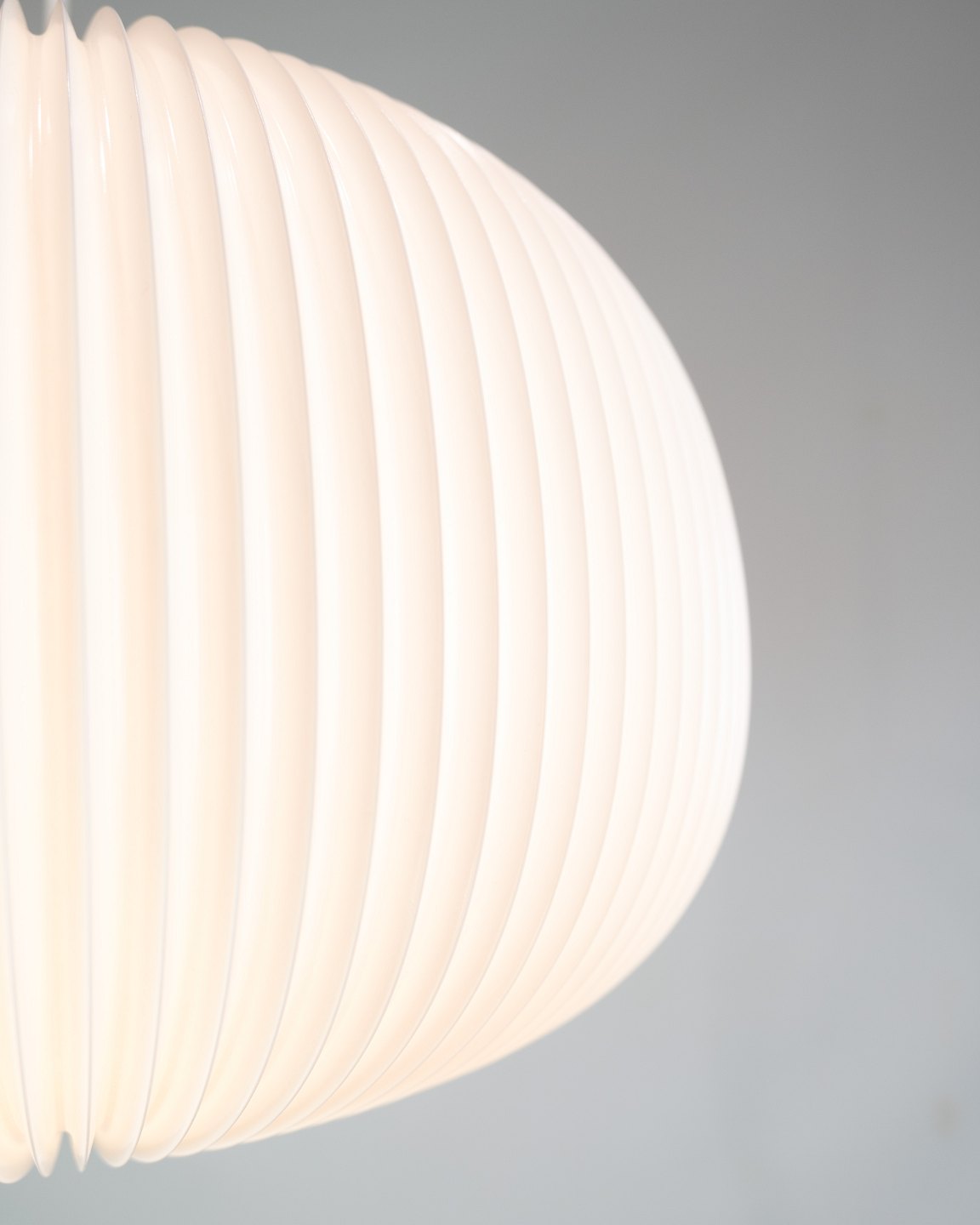 132 Lamella Serien er kendt for sit unikke design med lameller, der giver et blødt og diffust lys, samtidig med at de skaber et visuelt tiltalende mønster på loftet og væggene. Sølvmodellen tilføjer et moderne og stilfuldt præg til enhver indretning.