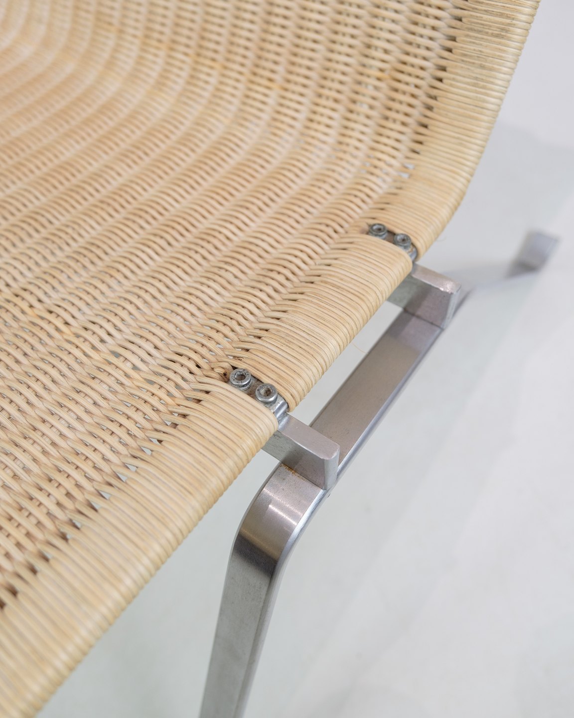 Fremstillet af Fritz Hansen i 1993, er denne PK22-stol et eksempel på tidløs design, der stadig begejstrer og inspirerer i dag. Den har et let og slankt kromstel, der skaber en smuk kontrast til det bløde og komfortable flet i sædet og ryglænet. Den originale fletting tilføjer en naturlig varme og tekstur til stolen, samtidig med at den understreger dens æstetiske appel.