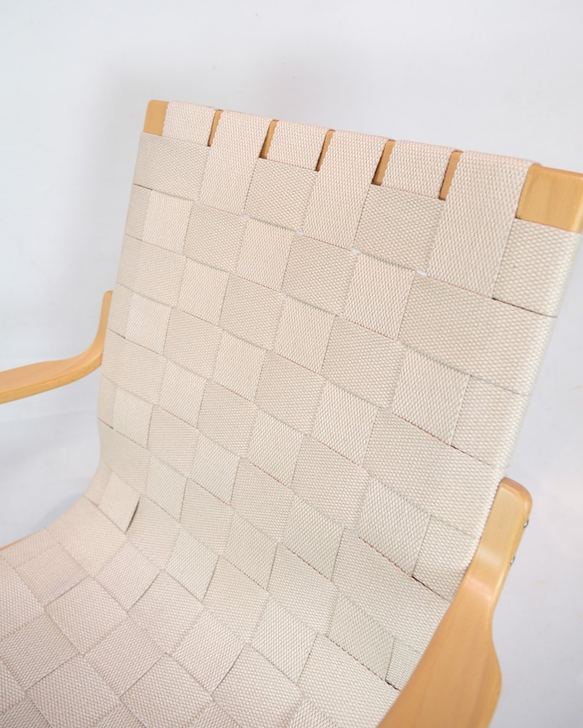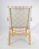 Et karakteristisk træk ved denne lænestol er dens sæde og ryg, der er flettet af høj kvalitet gjorder. Denne flettede konstruktion ikke blot tilføjer en æstetisk dimension til stolen, men tilbyder også en komfortabel og støttende siddeoplevelse.