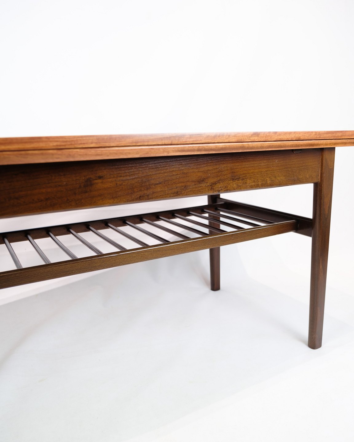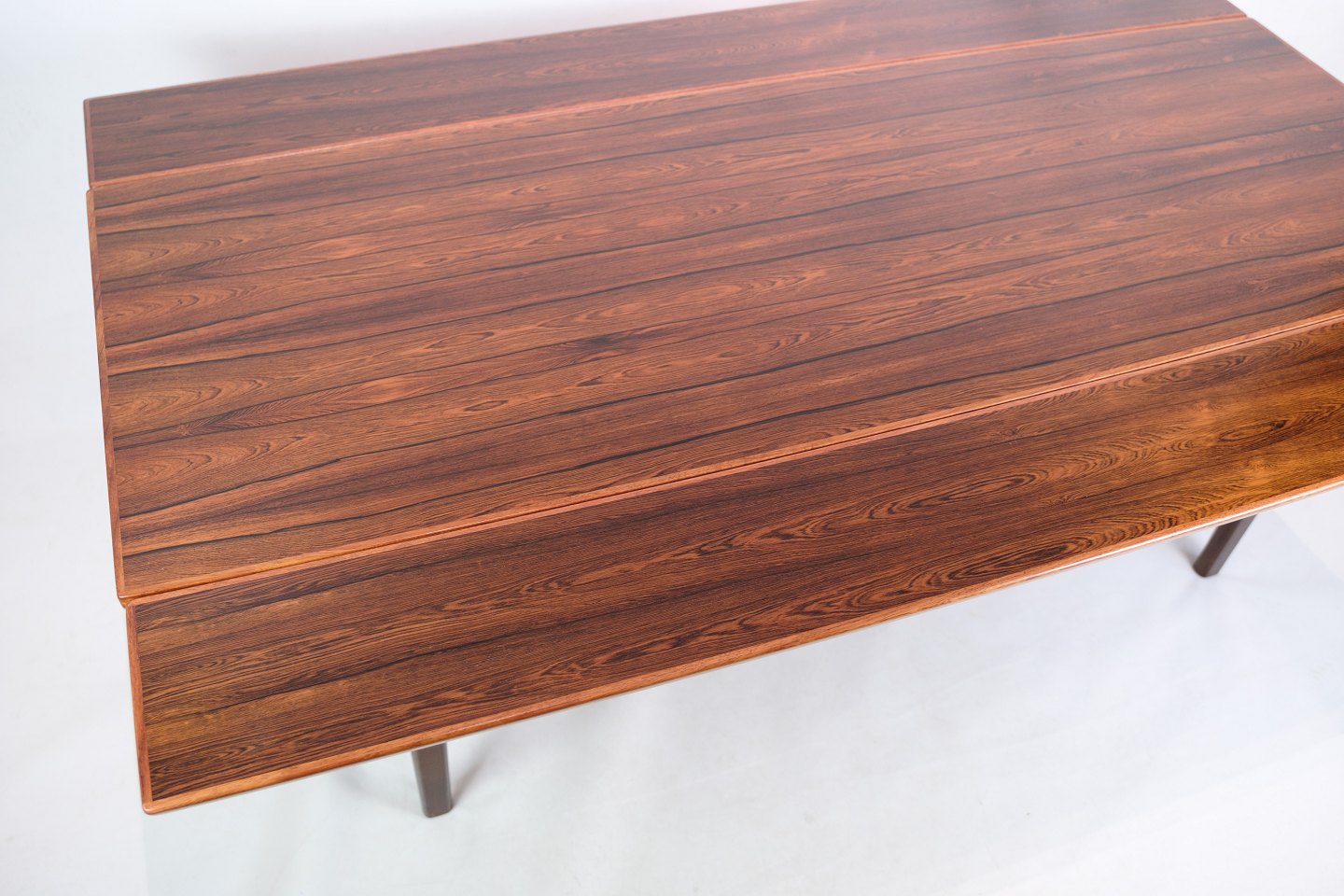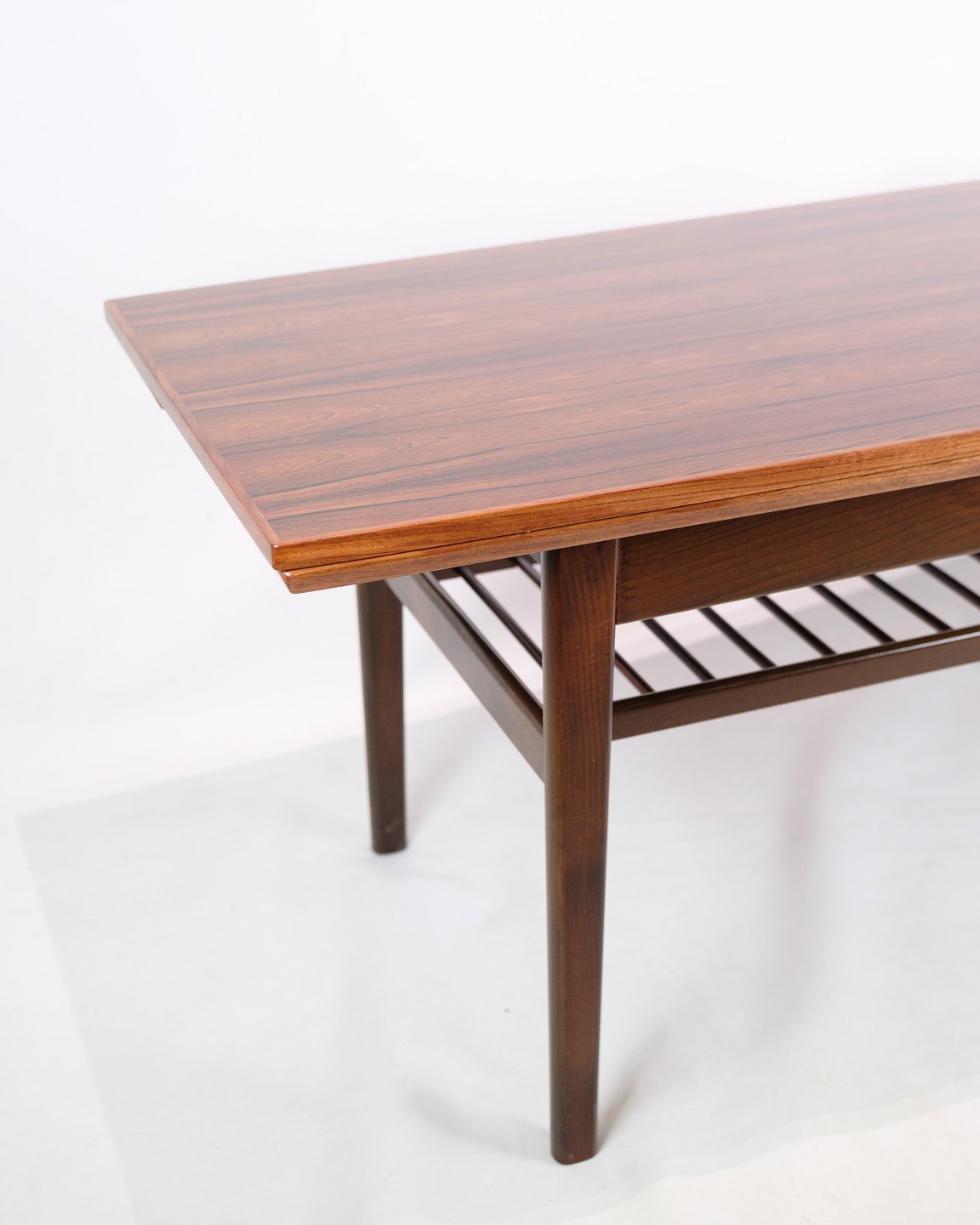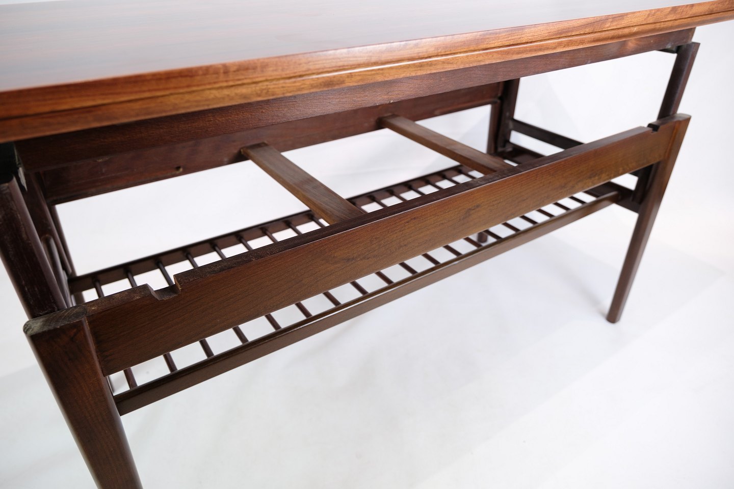 Dette sofabord er et imponerende stykke møbelkunst, der udstråler både elegance og funktionalitet. Fremstillet af palisander præsenterer det et højdepunkt inden for dansk møbeldesign.
