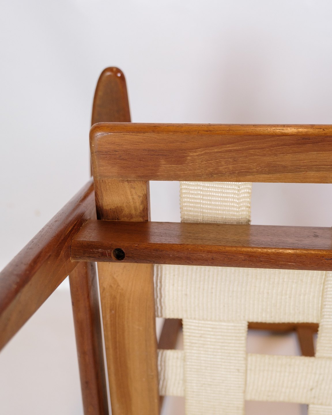 Teaktræets varme, rige toner og smukke åretegninger tilføjer stolen en naturlig elegance og robusthed. Teak var et populært materiale i 1960'erne på grund af dets holdbarhed og æstetiske appel, og dets brug i denne stol sikrer, at møblet kan modstå tidens tand.
