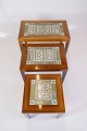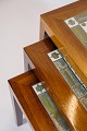 SoldThis set of side tables, designed by Severin Hansen in the 1960s, is an excellent example of Danish mid-century modern design. The tables are made of beautiful rosewood and decorated with Royal Copenhagen tiles, creating an elegant combination of natural materials and artistic decoration.