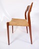 Dette sæt af fire spisestuestole, model 71, designet af Niels Otto Møller i 1960'erne, er et fremragende eksempel på dansk mid-century modern design. Stolene kombinerer teaktræets naturlige skønhed med papirflet, hvilket skaber en elegant og tidløs æstetik.