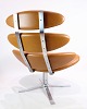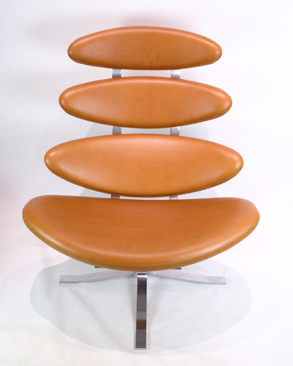 Please contact us for price informationThe Corona recliner, model EJ 5, upholstered in Walnut Elegance leather, designed by Poul M. Volther for Erik Jørgensen in the 1960s. The chair is known for its unique shape and comfort. Poul M. Volther was a pioneer in Danish furniture design, and Erik Jørgensen is known for his focus on quality and craftsmanship.