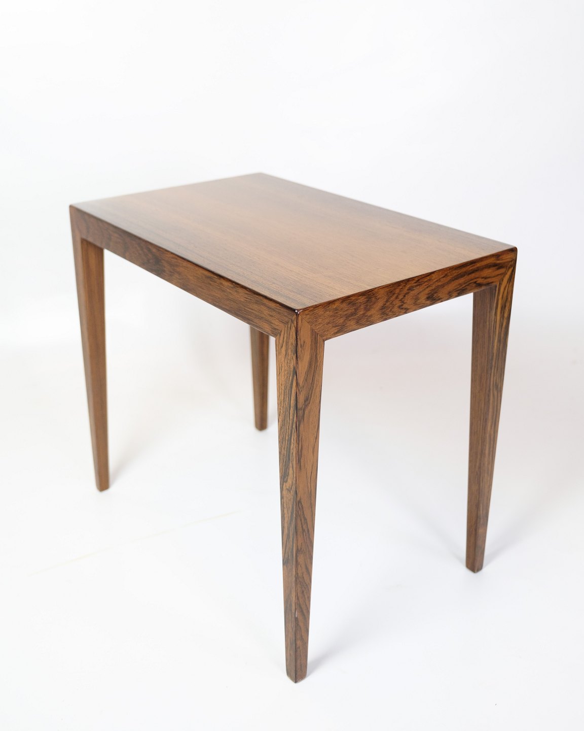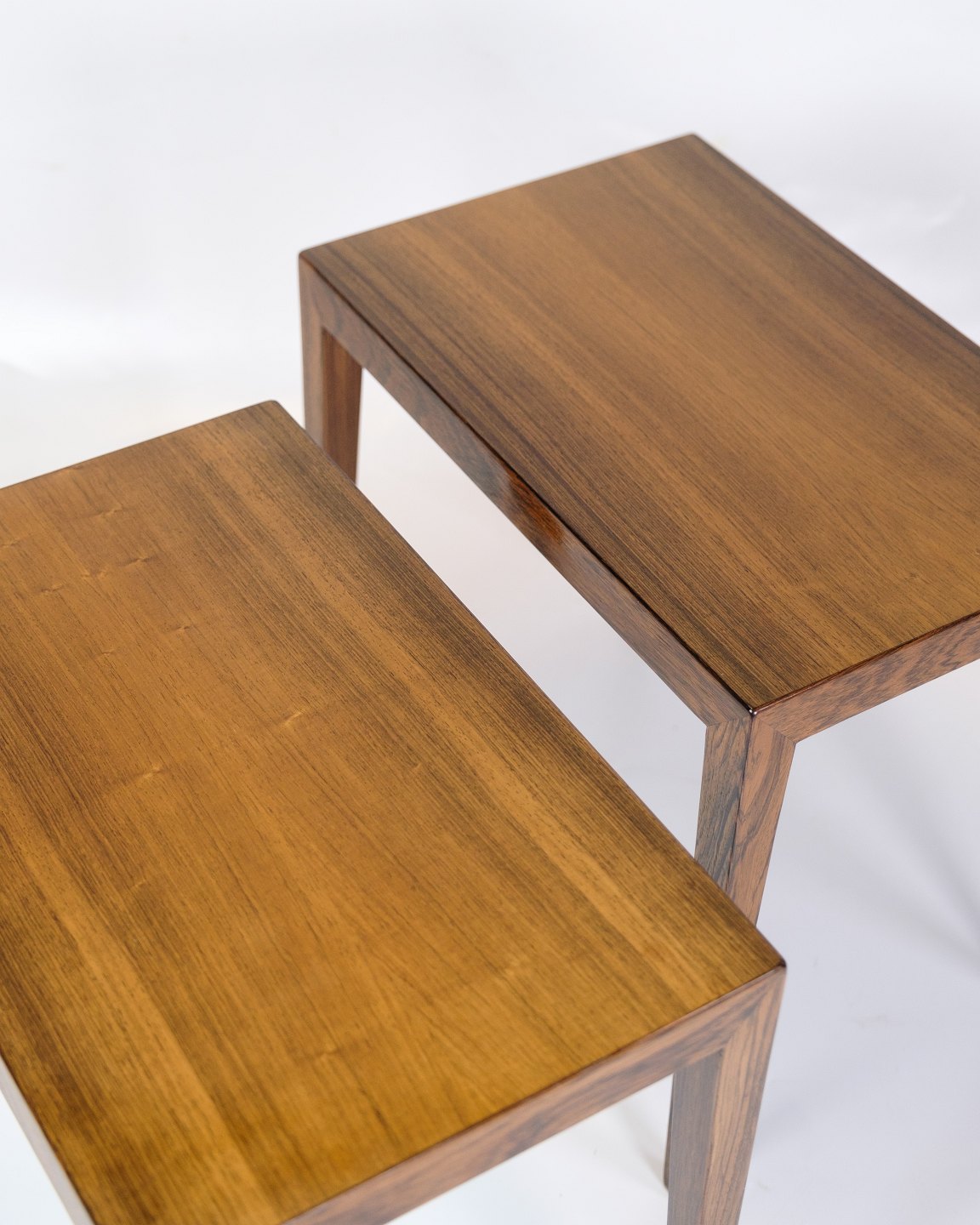 SolgtSæt af 2 sideborde/natborde udført i palisander, model 41B, designet af Severin Hansen og fremstillet af Haslev Møbelfabrik i 1960'erne.