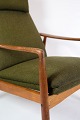 Alf Svensson, a renowned designer, has created these armchairs with an elegant teak wood frame that harmonizes beautifully with the green fabric cover.