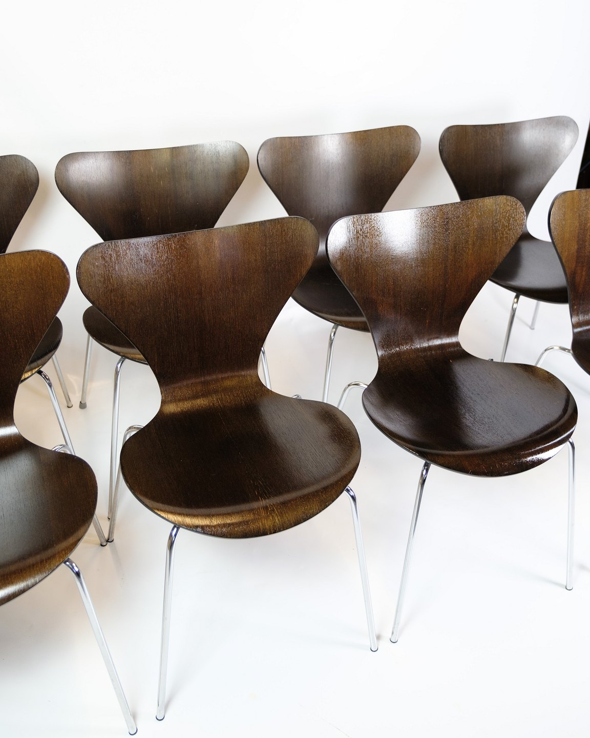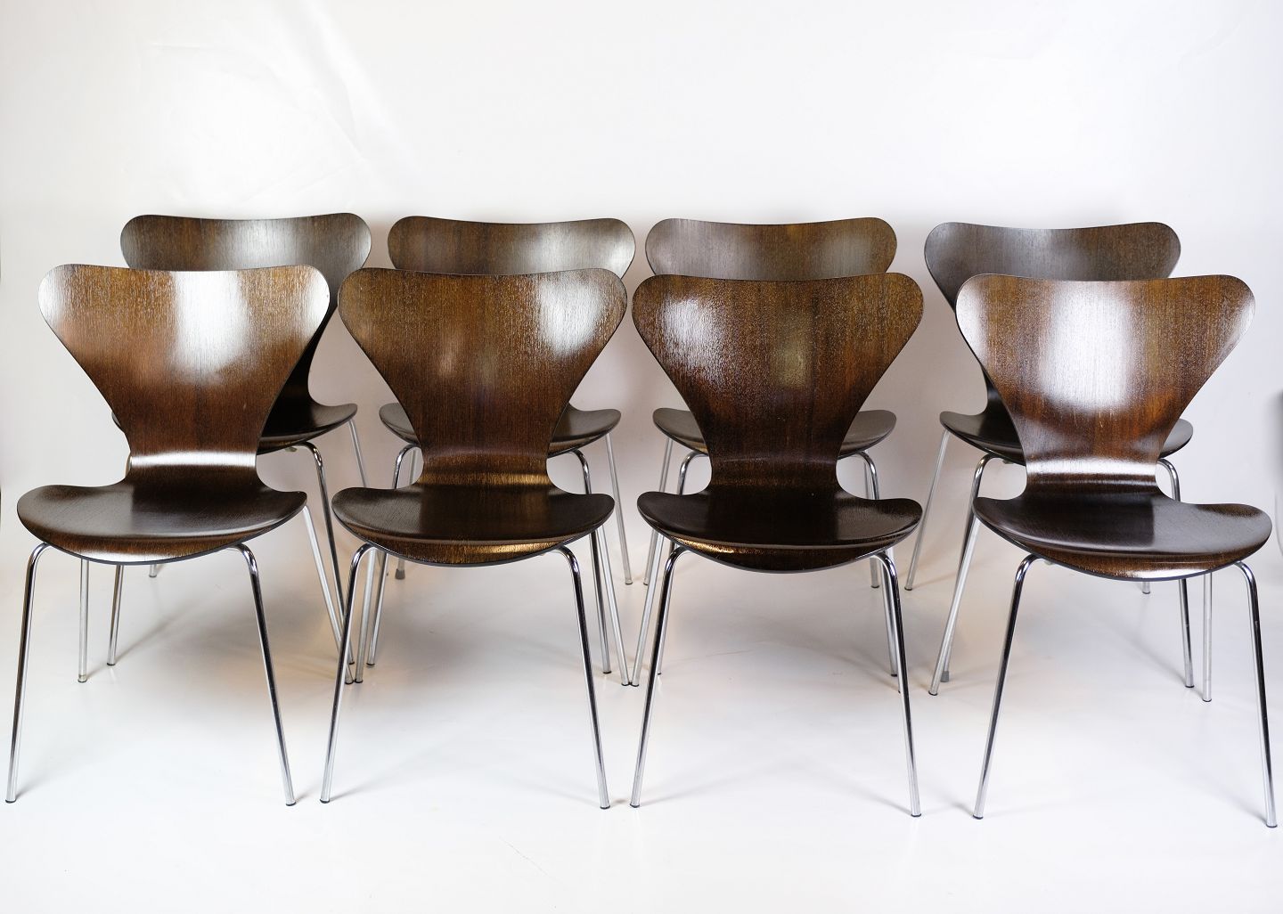 Set Of 8 Dining Chairs - Model 3107 - Seven Chairs - Dark Oak - Arne Jacobsen - Fritz Hansen - 1990s