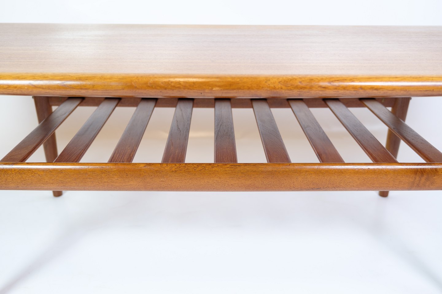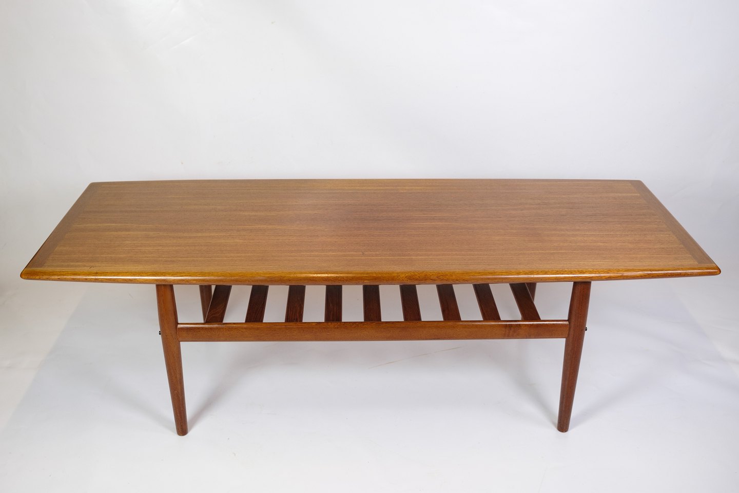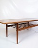 Teak coffee table, designed by Grete Jalk and manufactured by Glostrup Møbelfabrik in the 1960s. The table has a simple and stylish design, which is characteristic of Danish furniture from the period. The teak wood gives the table a warm color tone and shows the beautiful grain of the wood, which emphasizes the quality of the material.