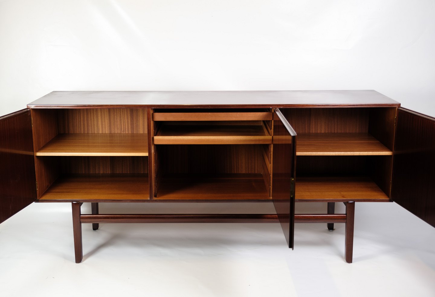 The sideboard stands on a slightly raised frame with 4 legs and a stiffening crossbar, which provides both stability and elegance. Wanscher's focus on simplicity and functionality clearly shines through, and this piece of furniture is a good example of Danish design from the period.