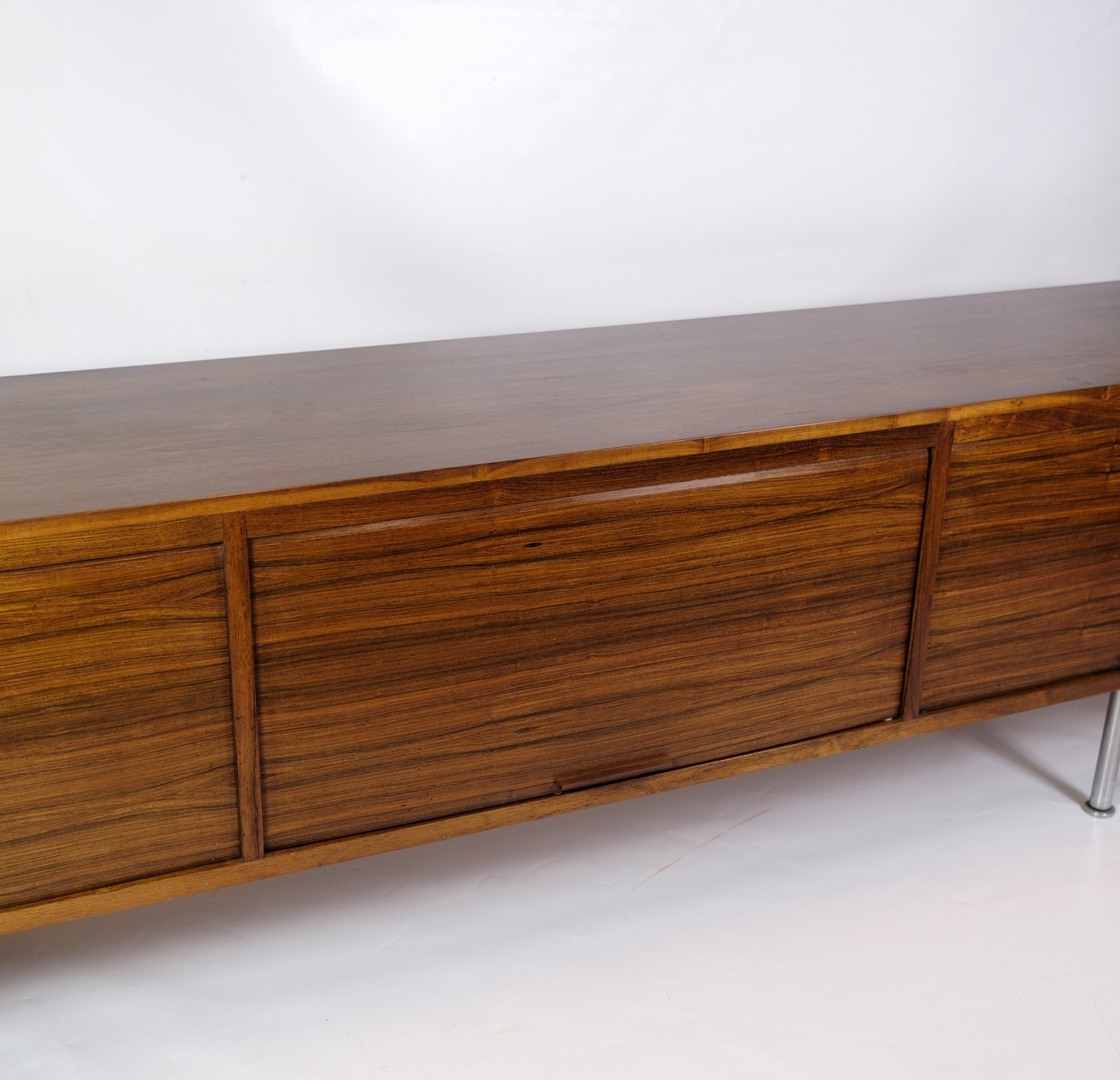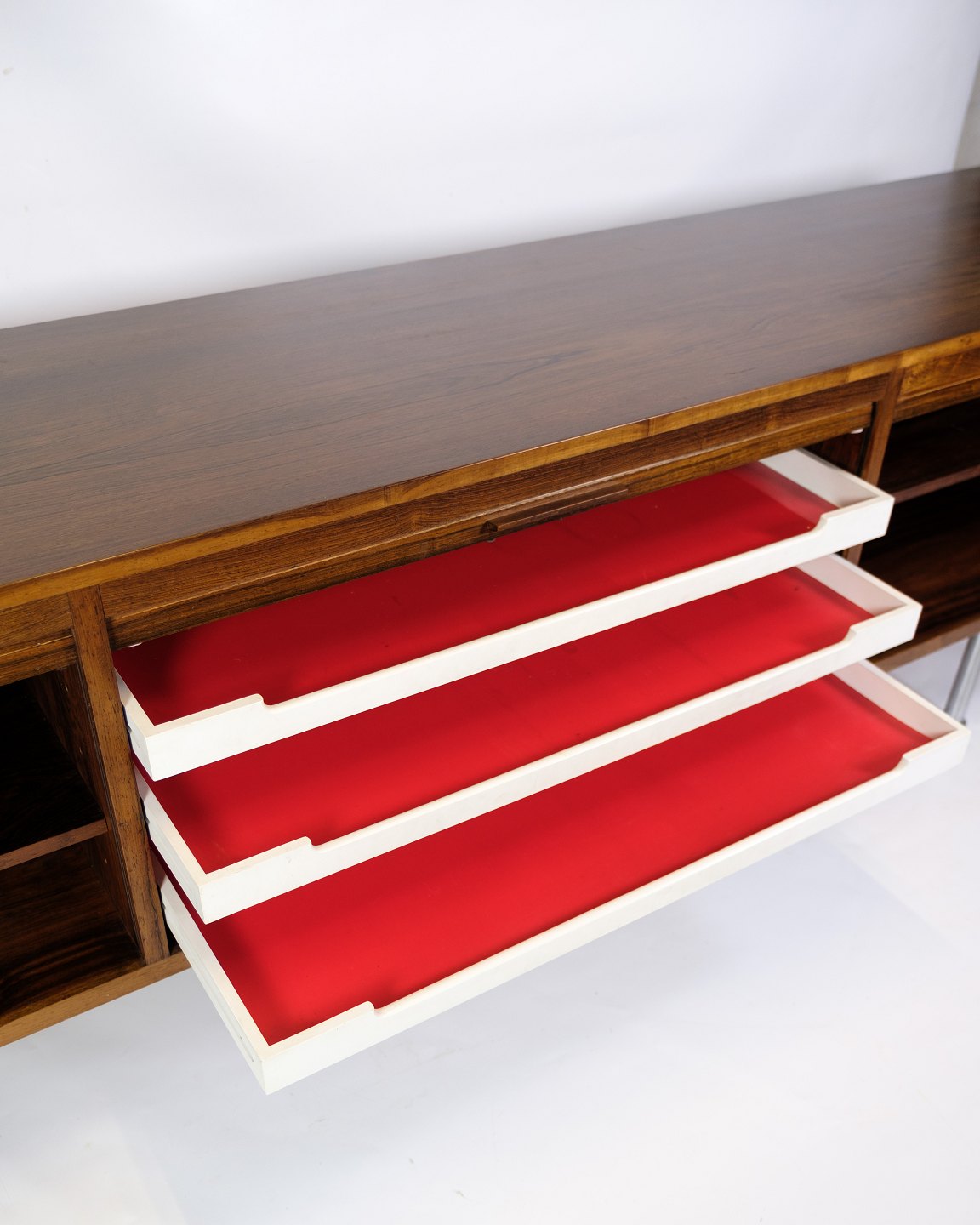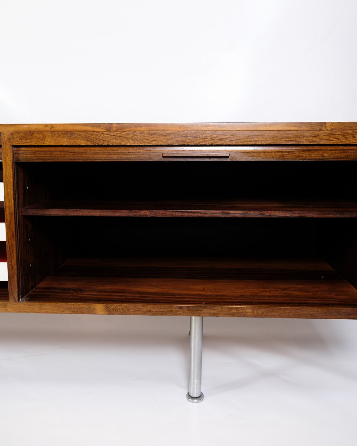 SoldThis sideboard in rosewood represents the timeless elegance and functionality that characterizes Danish design from the 1960s. The sideboard offers both style and practical storage space.