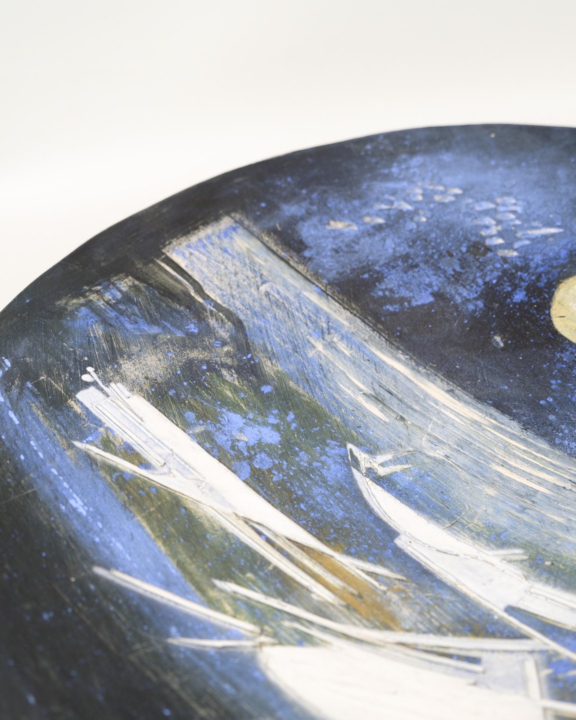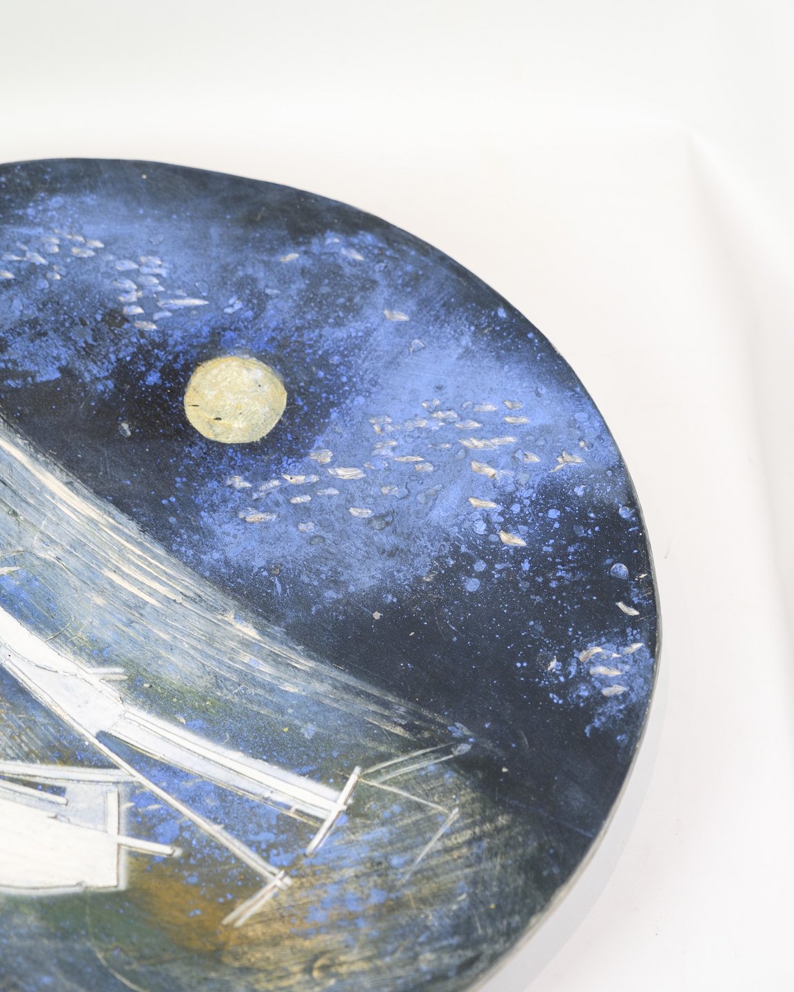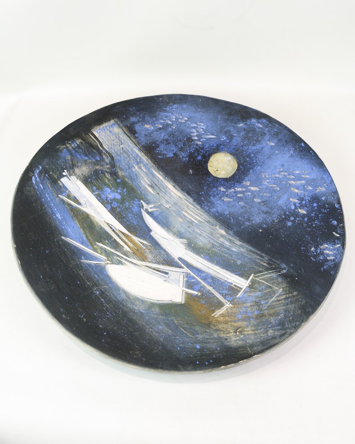 Unika Keramik Fad - Motiv Af Både Som Sejler Under En Måneoplyst Himmel - Jeppe Hagedorn-Olsen (1929–2011)