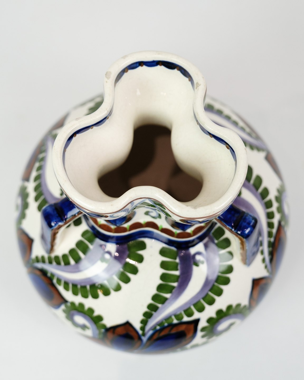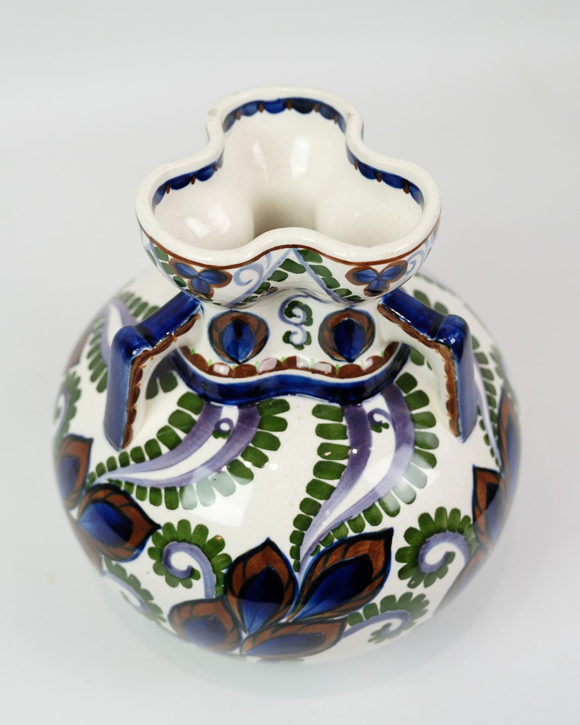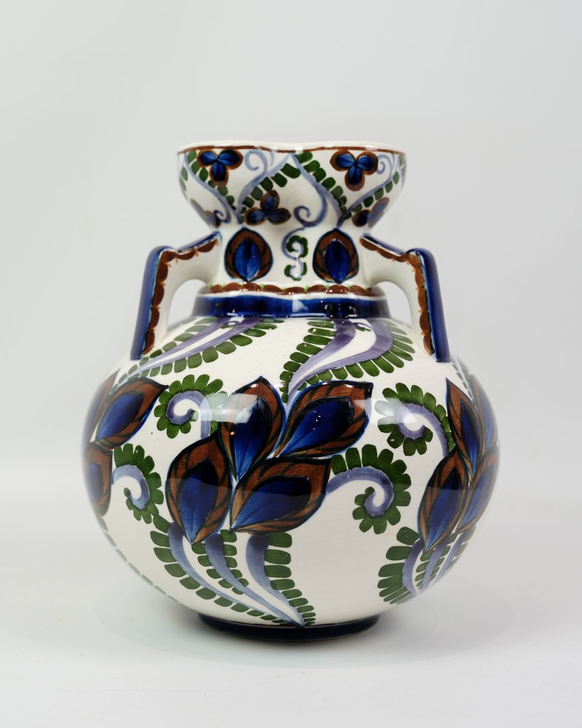 SolgtRund Vase med blomster motiv af kunst fajance fremstillet af Harald Slott-Møller Model 593/147. Vasen står i flot stand uden nogen skår.