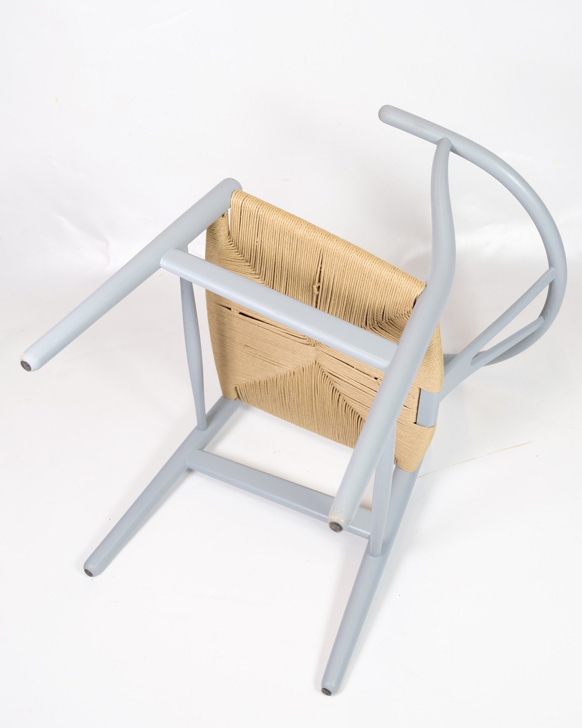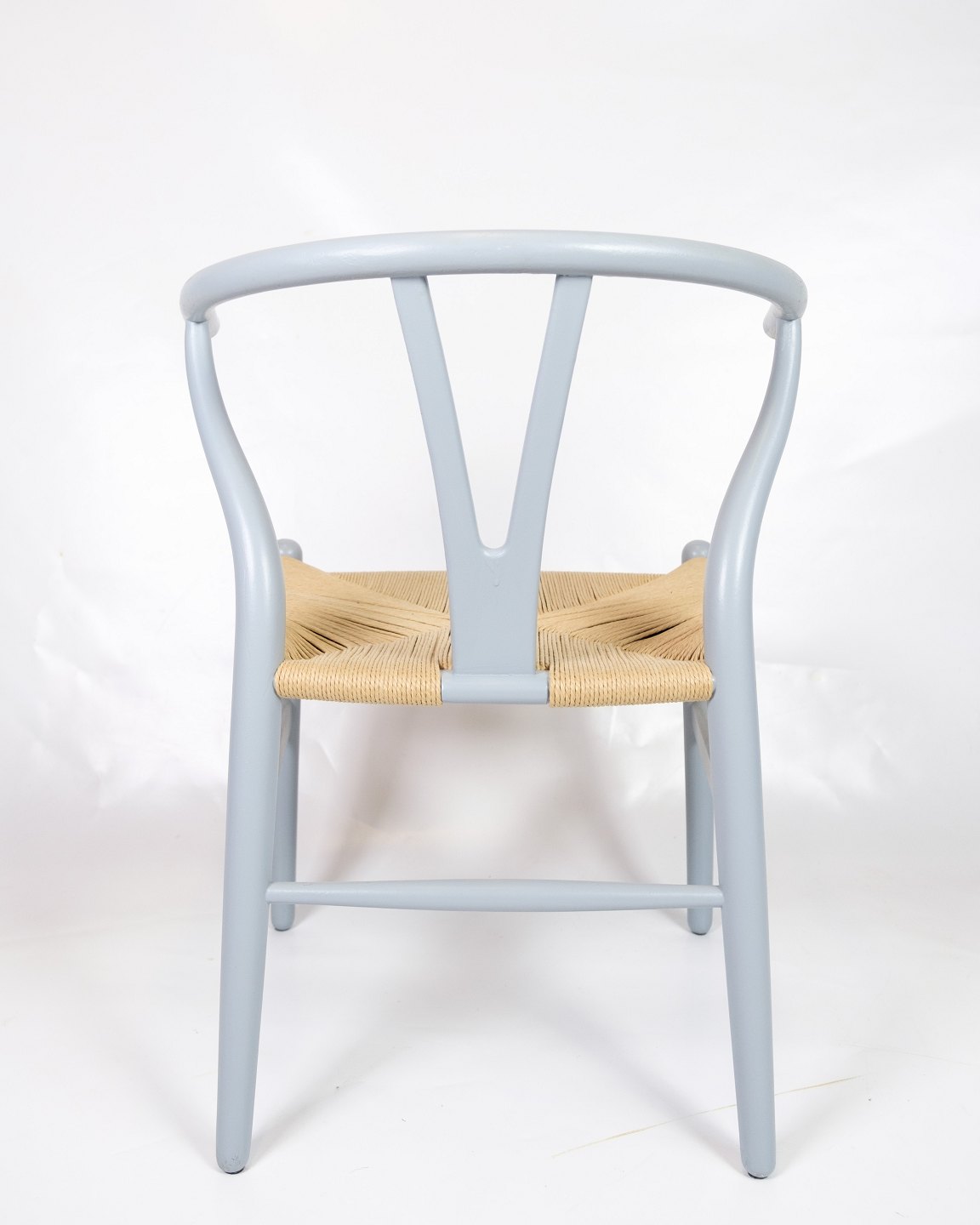 SoldSet of 4 Wishbone chairs, model CH24, designed by Hans J. Wegner and produced by Carl Hansen & Søn. The chairs are painted in a grey colour, which adds a modern expression to the classic design. The wishbone chair, was designed in 1949 and has been in production since 1950.