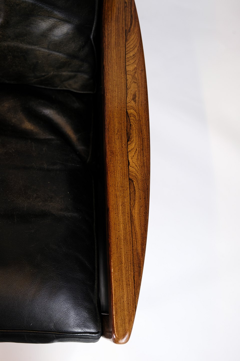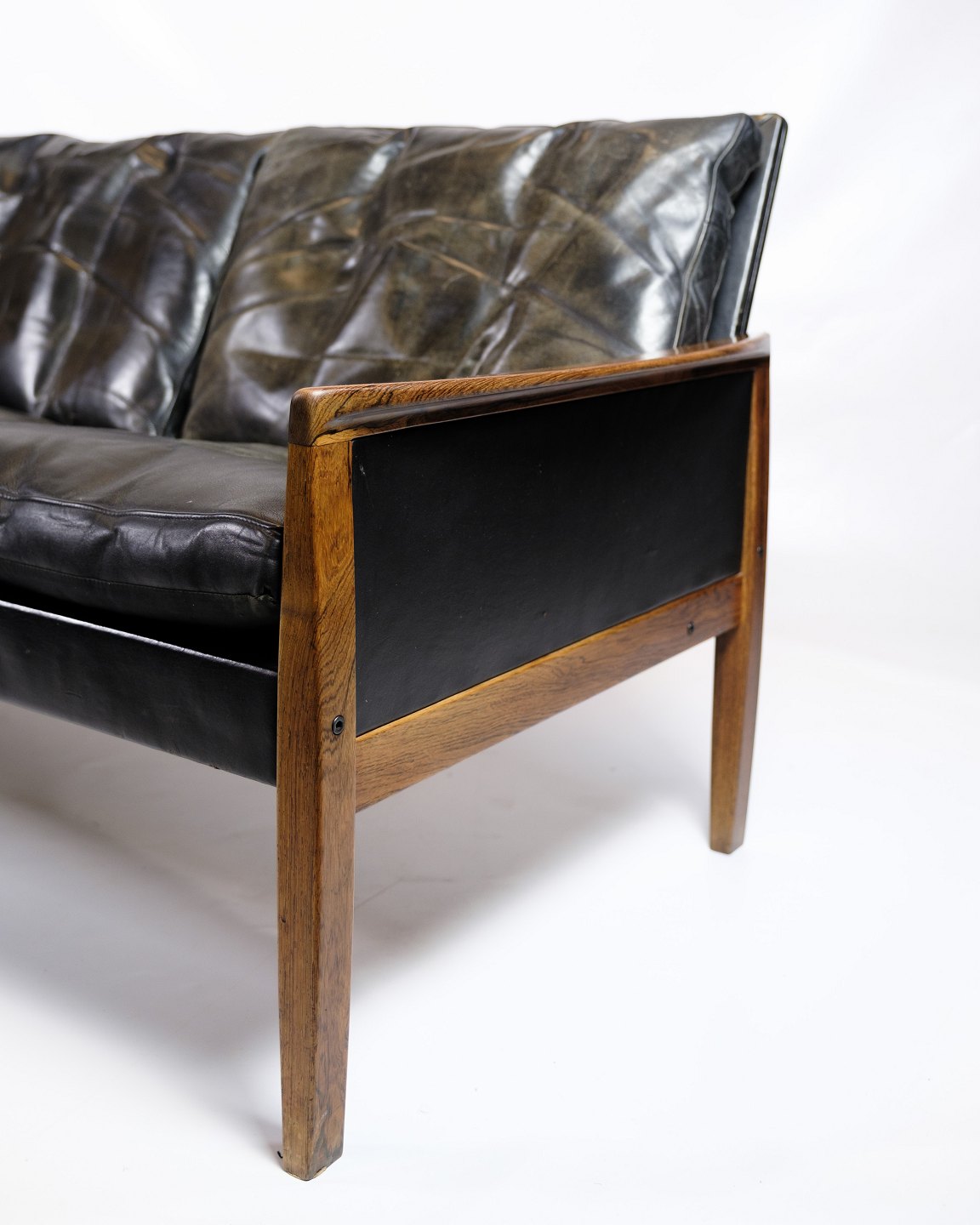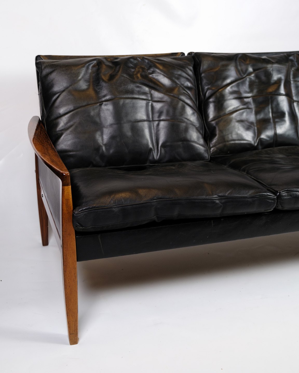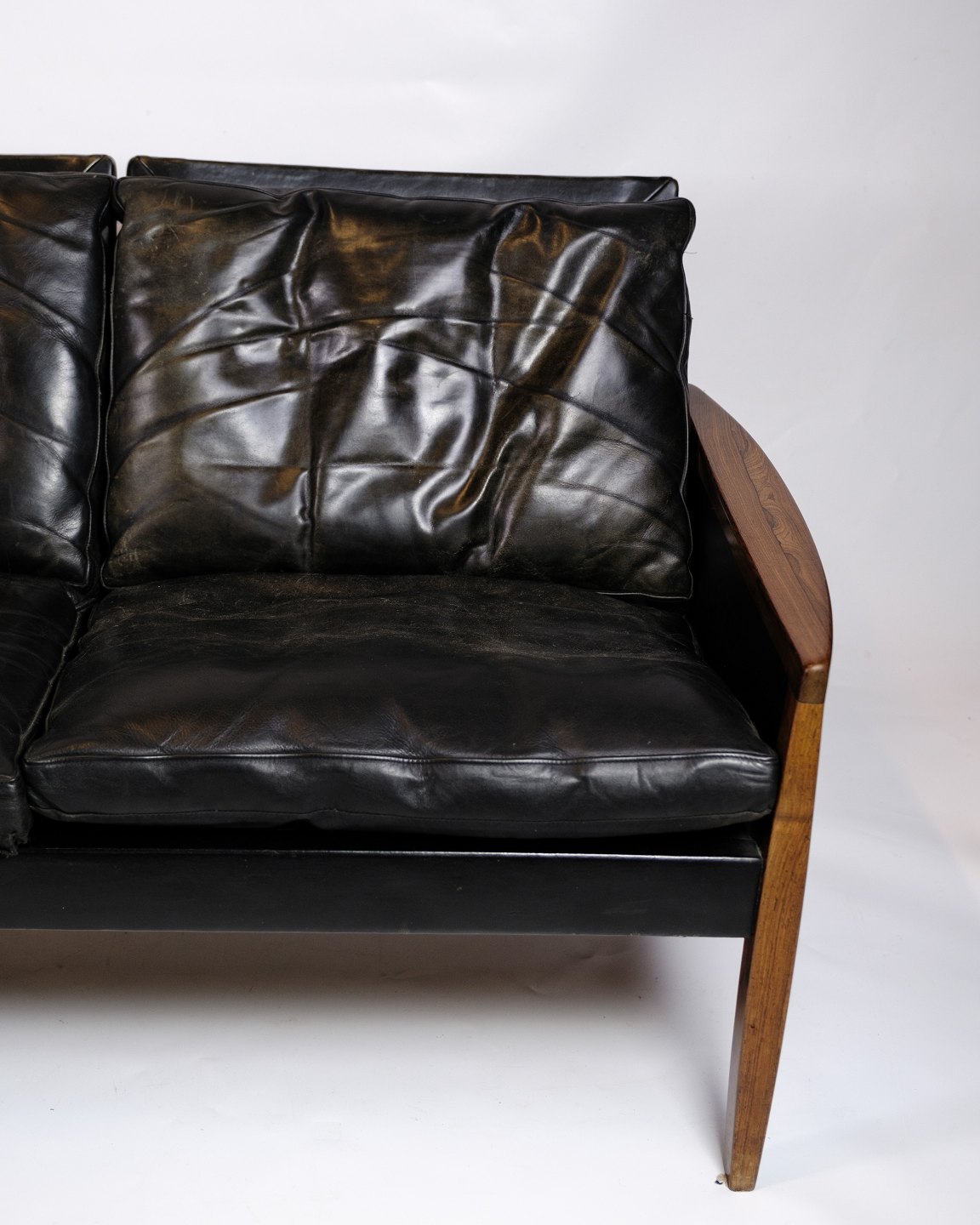 3 seater sofa - Rosewood - Black Leather Cushions - Hans Olsen - Brdr. Juul Kristensen - 1960