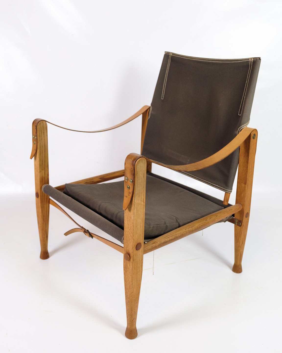 Safari Lænestole - Kaare Klint - Ask - Brunt Kanvas - Armlæn af Kernelæder - Rud. Rasmussen