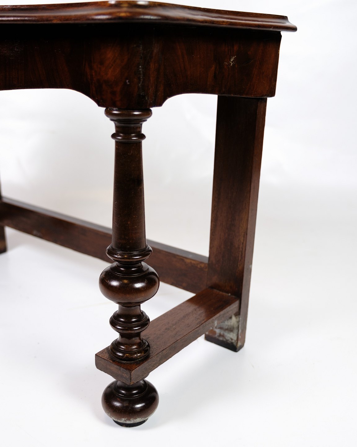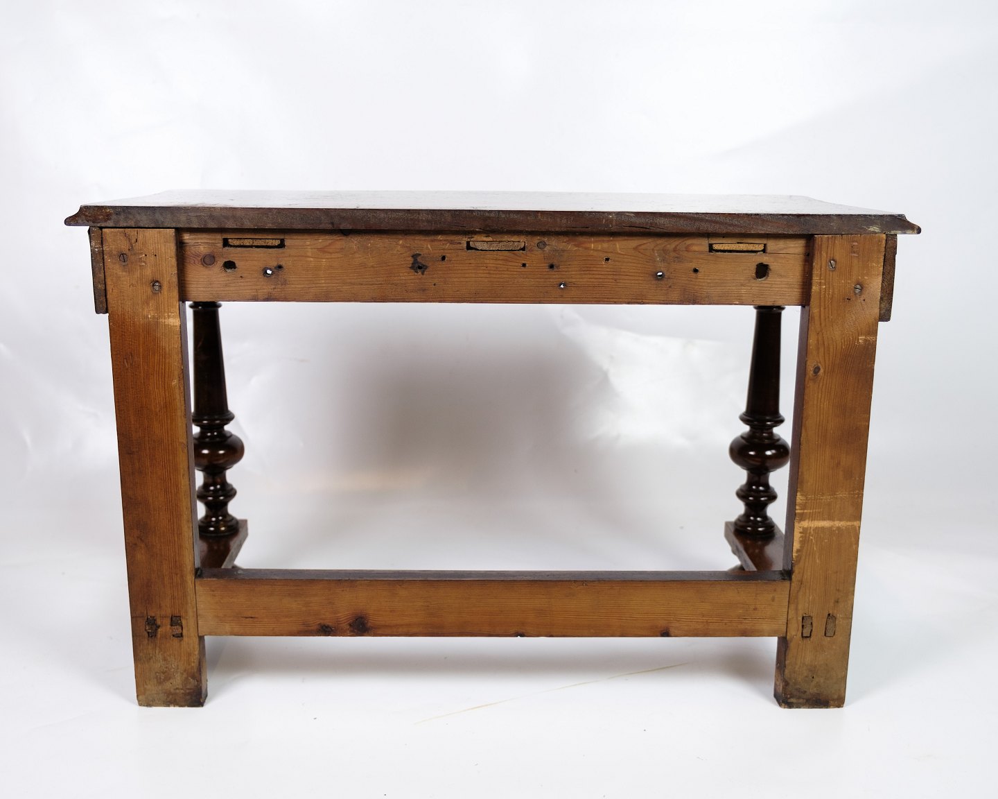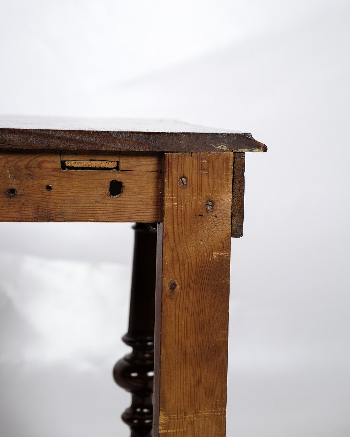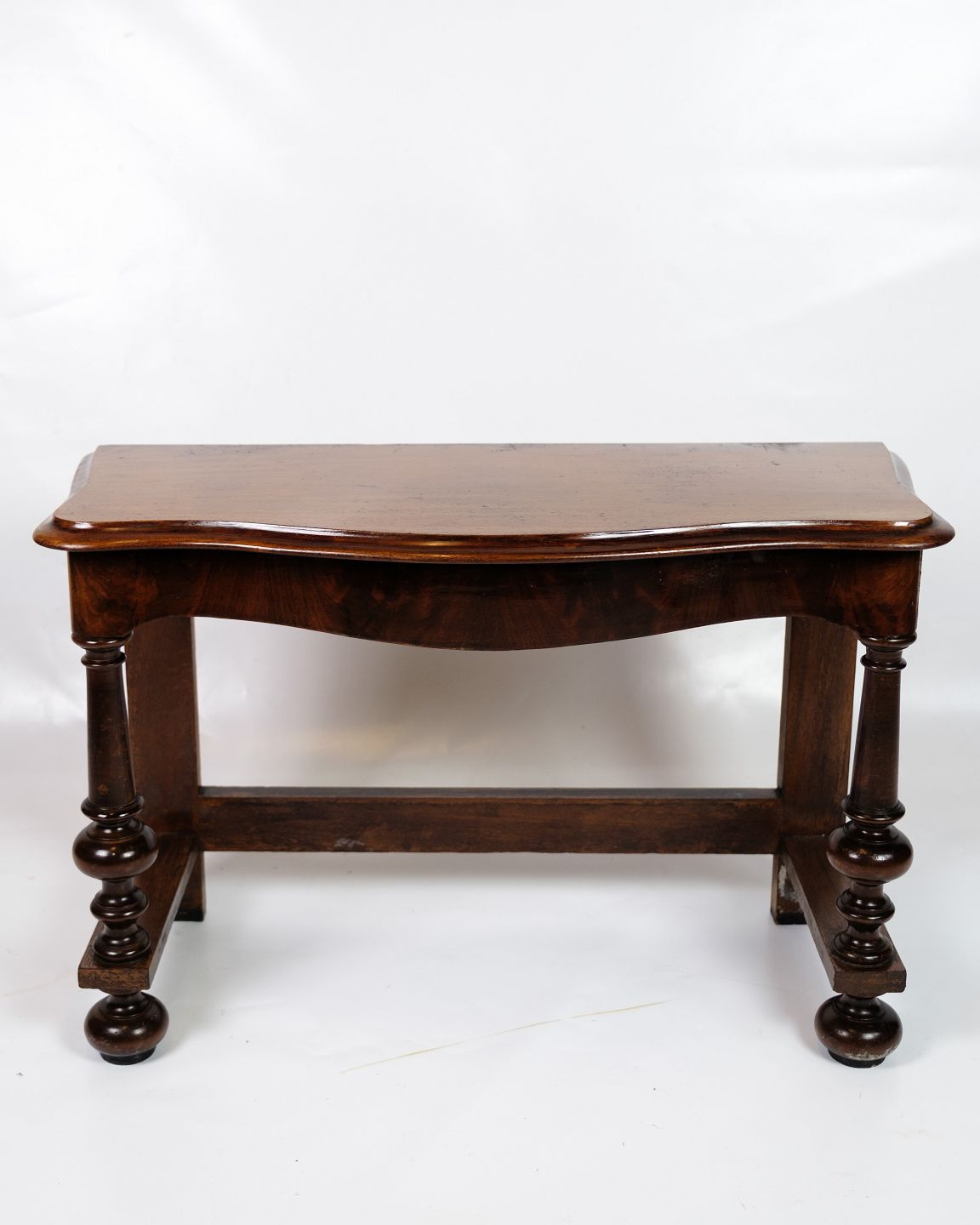 Console table or hall table from the 1920s, made of mahogany with round, elegantly turned legs. The table's slim design makes it ideal as a functional piece of furniture in the hall or as a console table in the living room. The warm color of the mahogany and its fine grain pattern reflect the period and craftsmanship typical of 1920s furniture production.