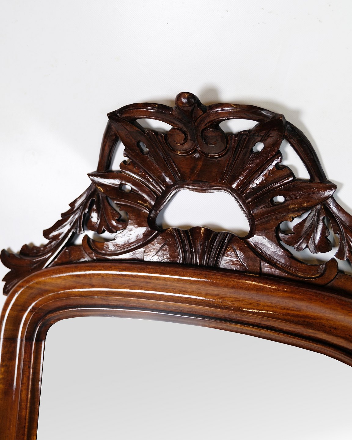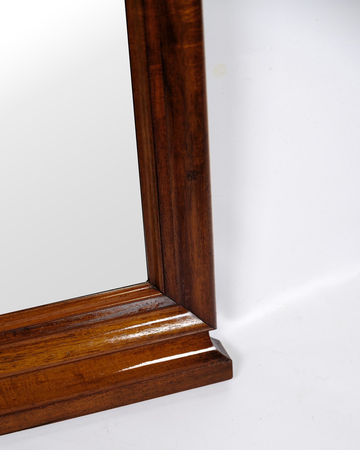Antique Christian VIII mirror from the 1860s, made of mahogany with decorative details typical of the period. The mirror has a rectangular frame that is highlighted by the natural warmth and fine grain pattern of the mahogany wood. The Christian VIII style combines elegance and simplicity, making this mirror a timeless interior design object with historical value.