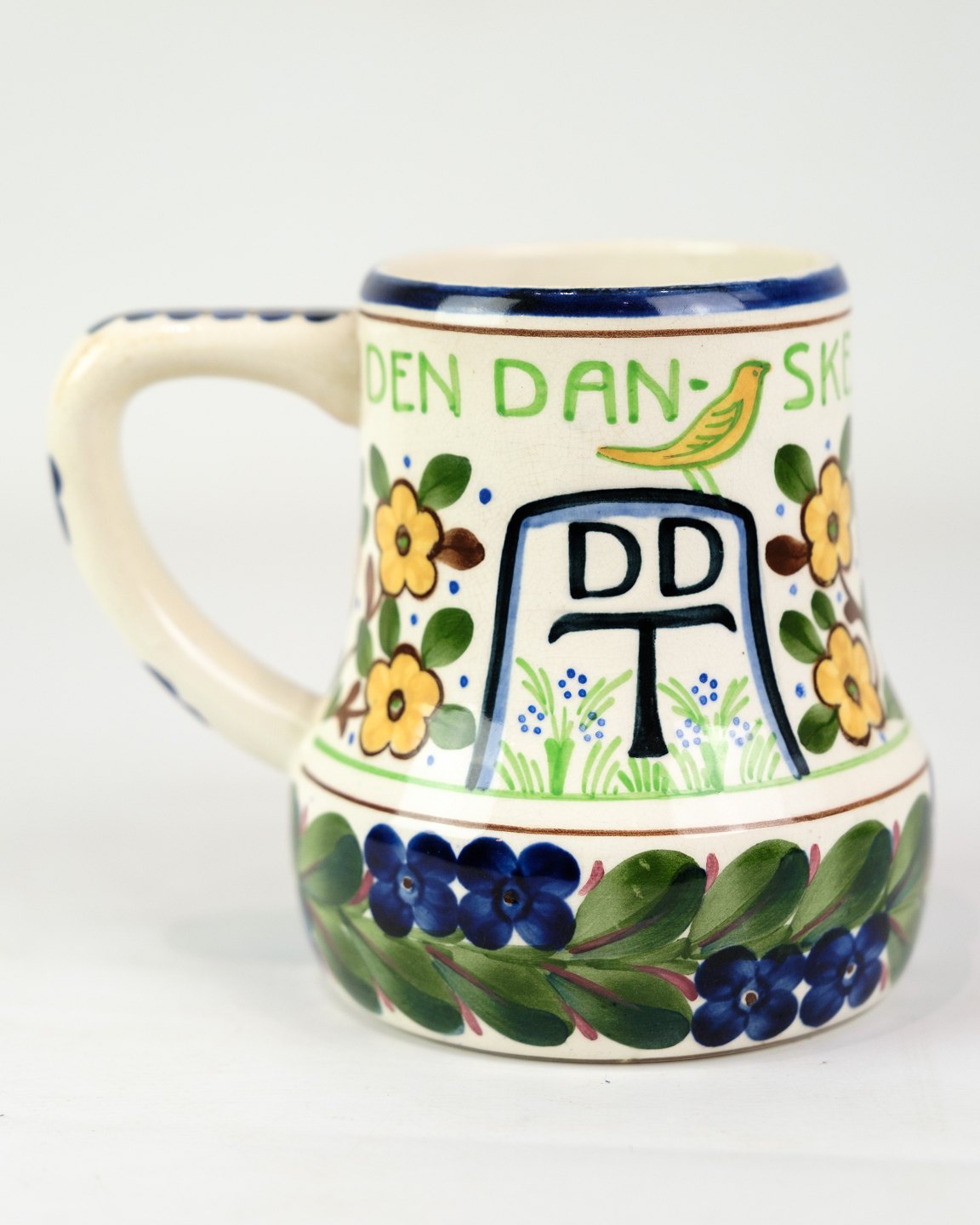 Dette krus, model 609/548, er fremstillet i fajance og designet i samarbejde med Den Danske Turistforening Nyborg. Kruset bærer et unikt og historisk præg, der afspejler Aluminia-fabrikkens tradition for kunstnerisk udsmykning og detaljerigdom.