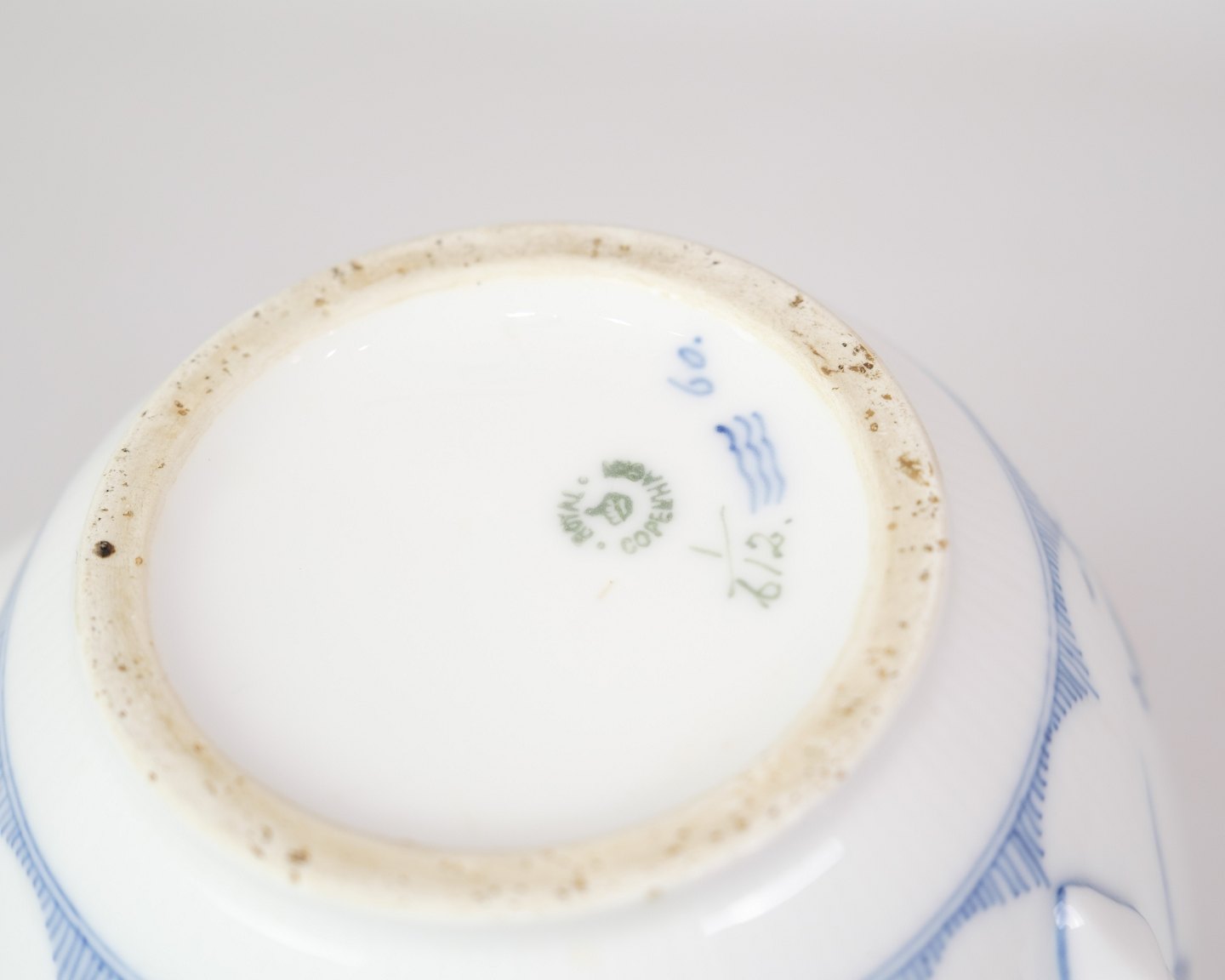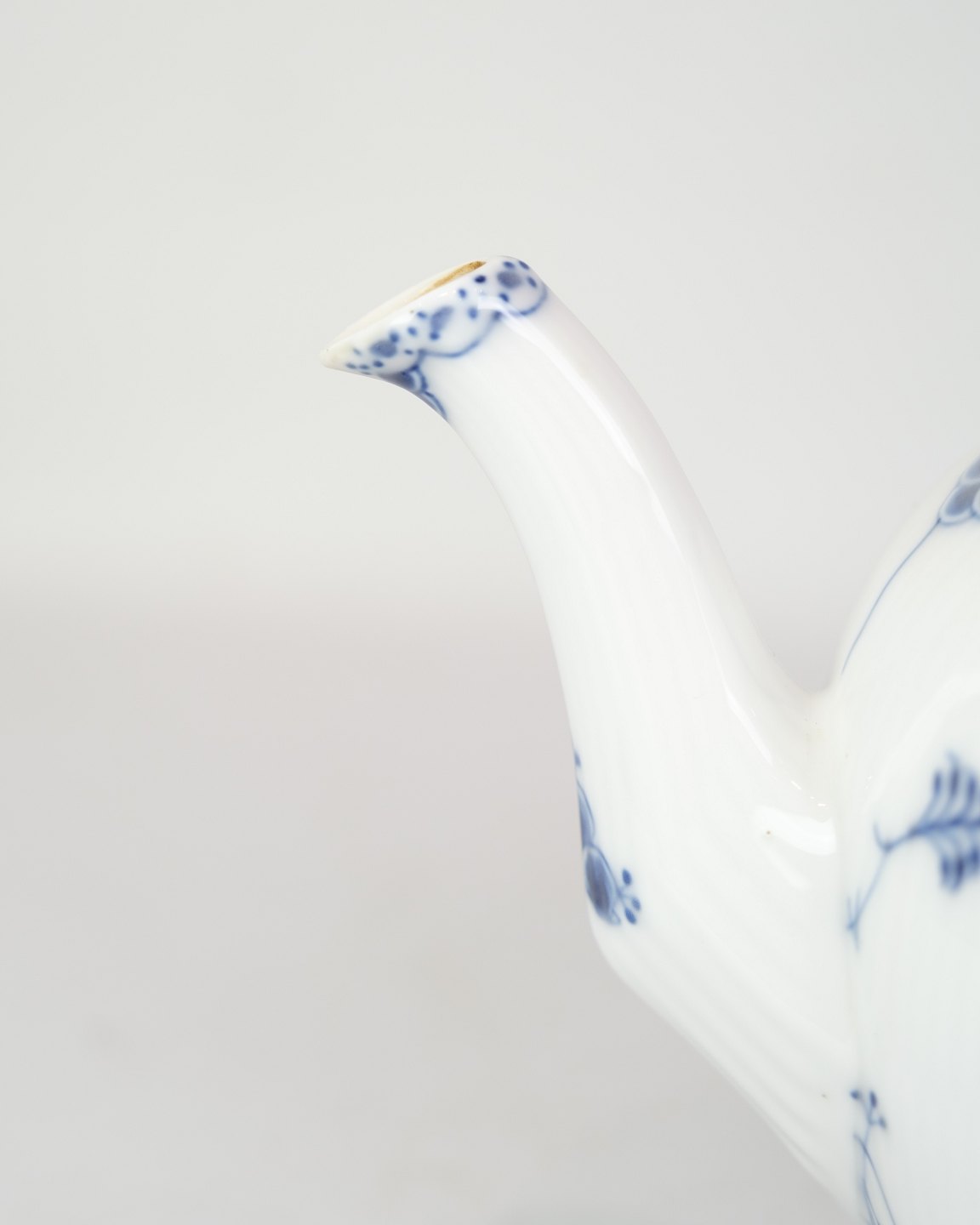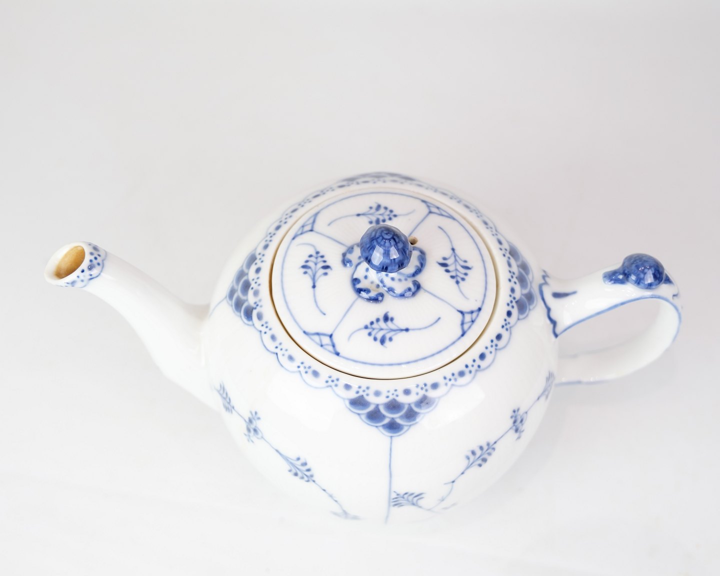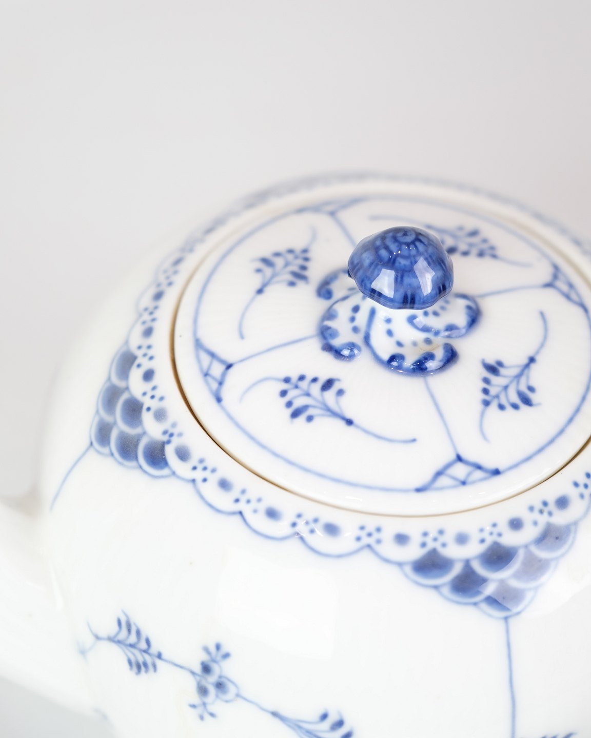 SoldLarge Teapot with Blue Fluted Fluted pattern by Royal Copenhagen model no. 612. Stands with beautiful blue hand-painted pattern.