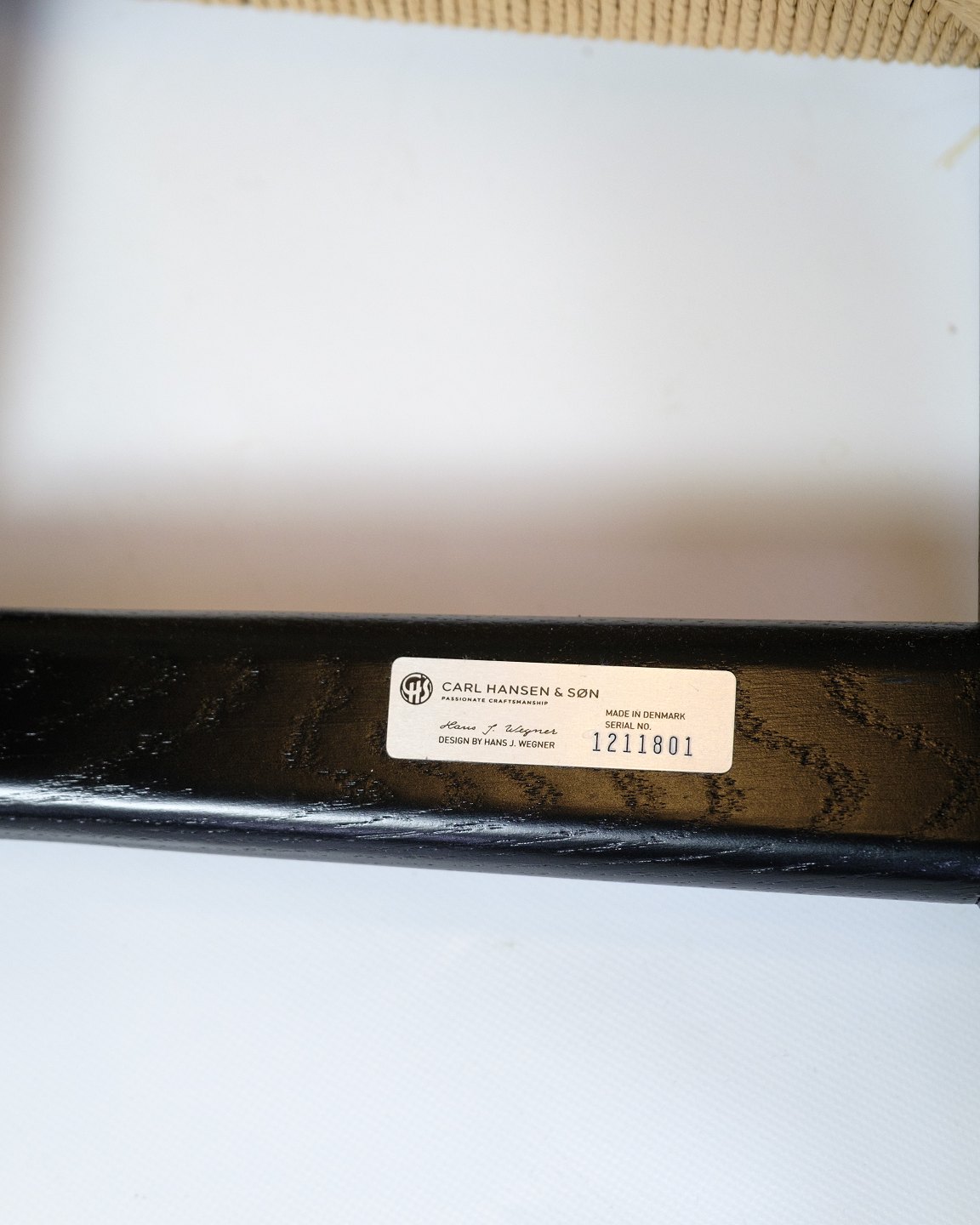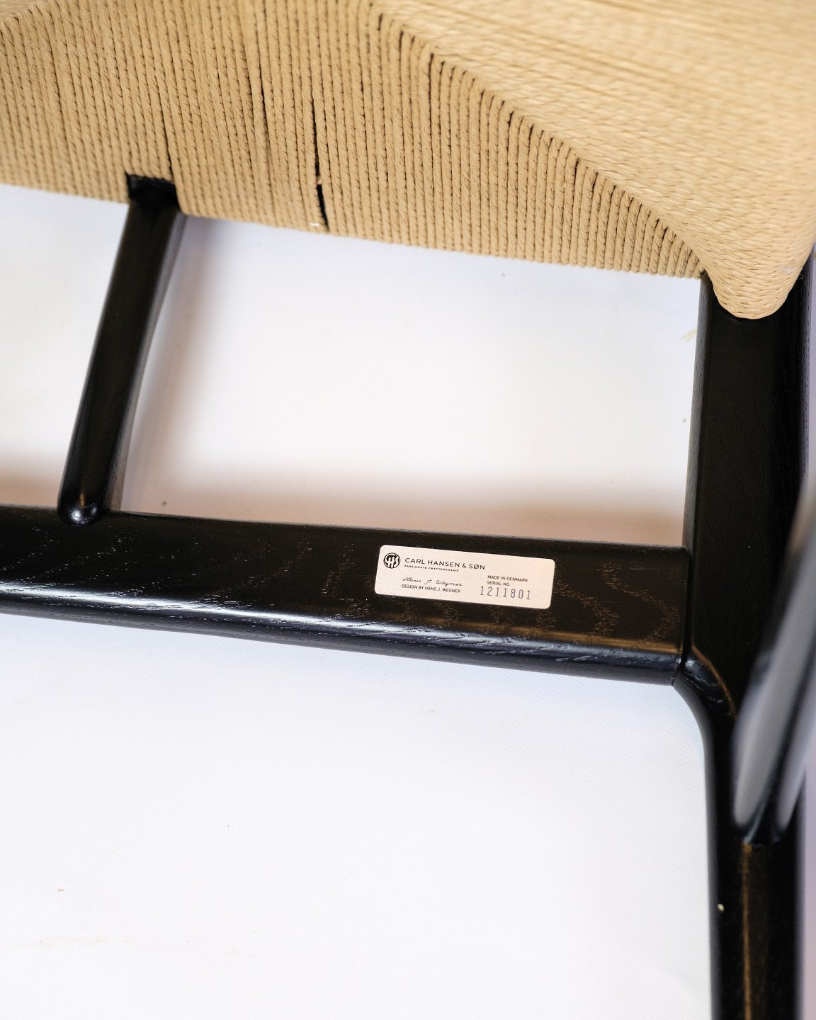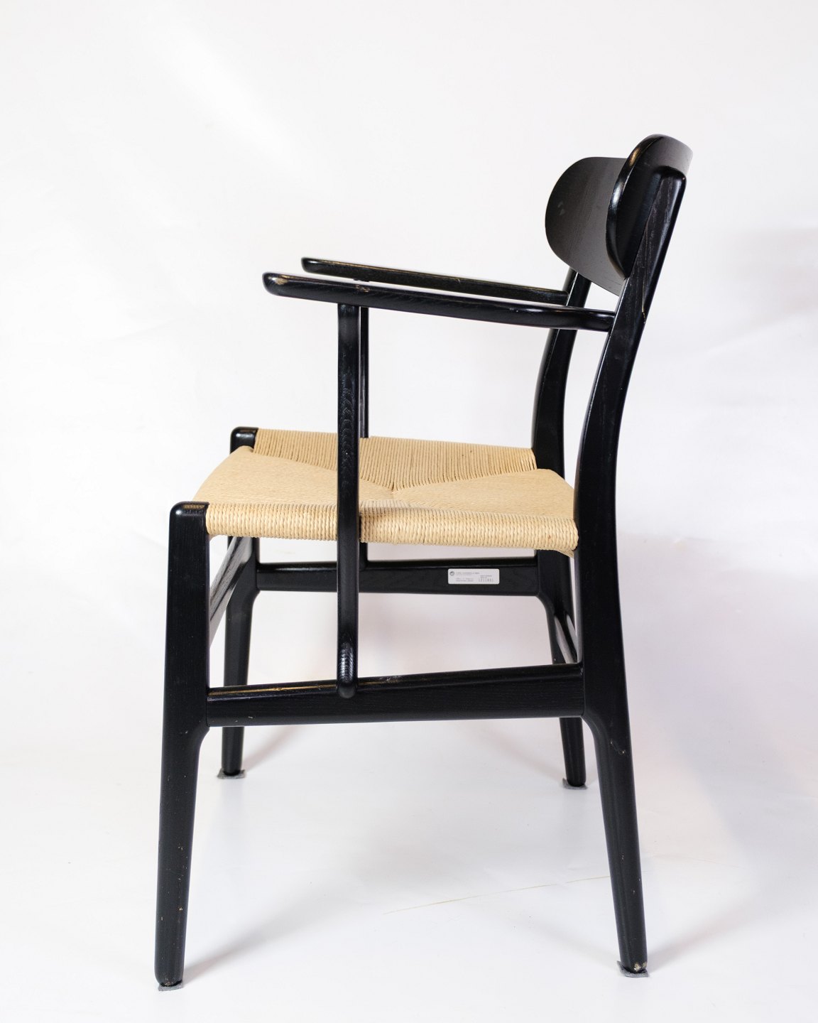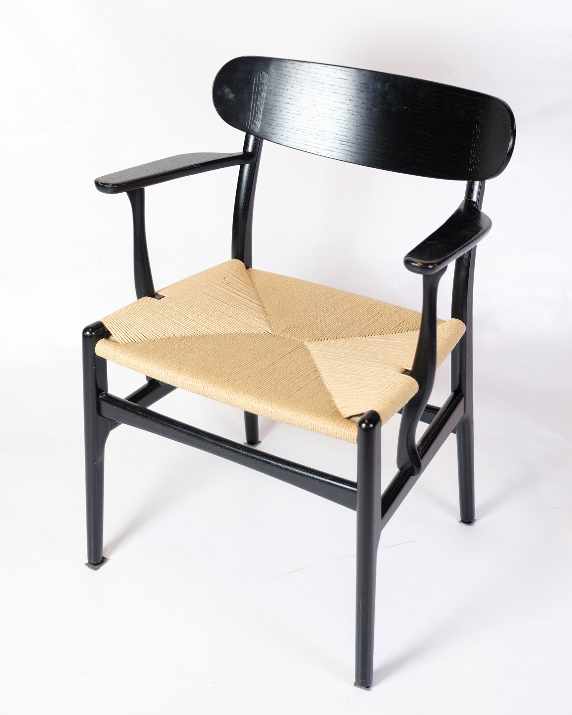 Lænestol med arme, model navnet CH26 fremstillet i Sort egetræ med lyst papirgarn fremstillet af Carl Hansen & Søn. CH26 stolen er et design af Hans J. Wegner fra 1950'erne og er faktisk et af de mere kompliceret at producere på baggrund af de buede former. Under udgivelsen af stolen, som også var Wegners debut Collection i deres samarbejde boede Wegner hos familien bag Carl Hansen & Søn for at følge processen. Der blev solgt meget få eksemplar dengang grundet prisen, som hertil var drevet af den komplekse produktion. I dag har man fået nyere maskiner til at lave stolen, som er gået hen og blevet en af wegners klassikere.