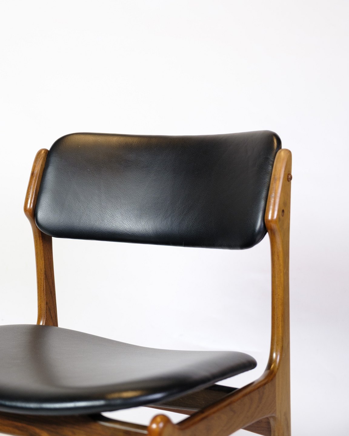 Set of Four Dining Chairs - Model OD 49 - Rosewood and Black Leather - Erik Buch - O.D Furniture - 1950s