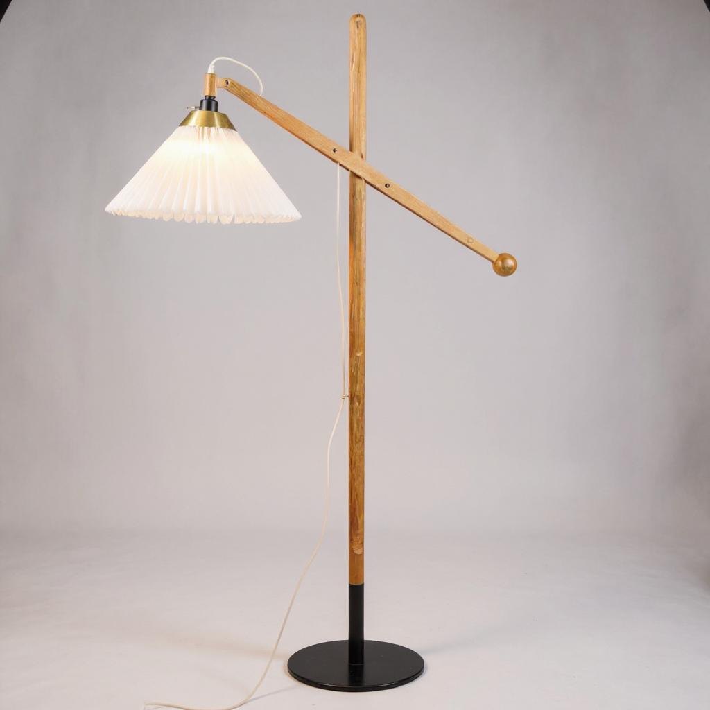 Gulvlampe, model 325 af Le Klint, designet af Vilhelm Wohlert i teak med original skærm fra omkring 1950'erne, Danmark. Det er en ret eftertragtet standerlampe, grundet dens alder og flotte stand.