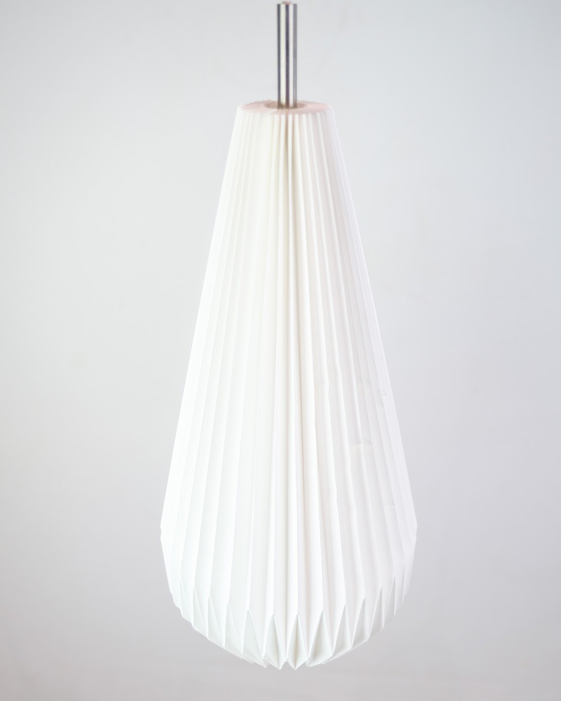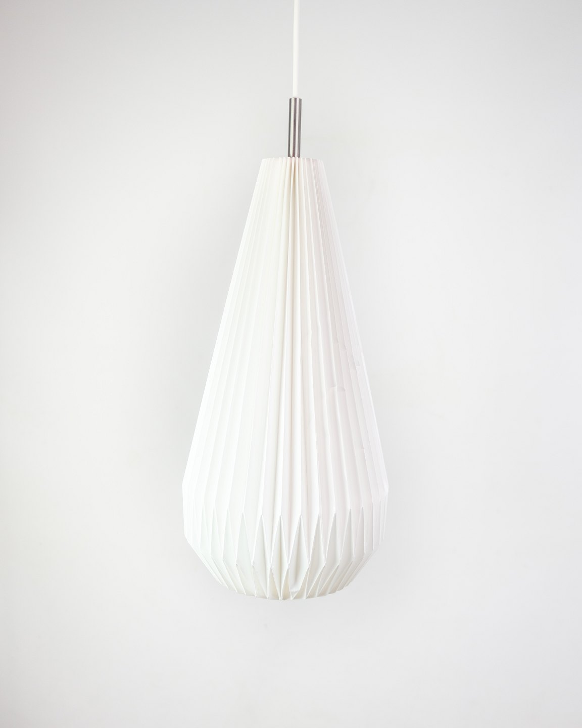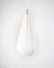 Sculptural pendant lamp from Le Klint, model 181 "Komet", designed by Poul Christiansen in 2003. The hand-folded shade in white plastic forms a teardrop-shaped silhouette, which spreads a soft, pleasant light without glare.