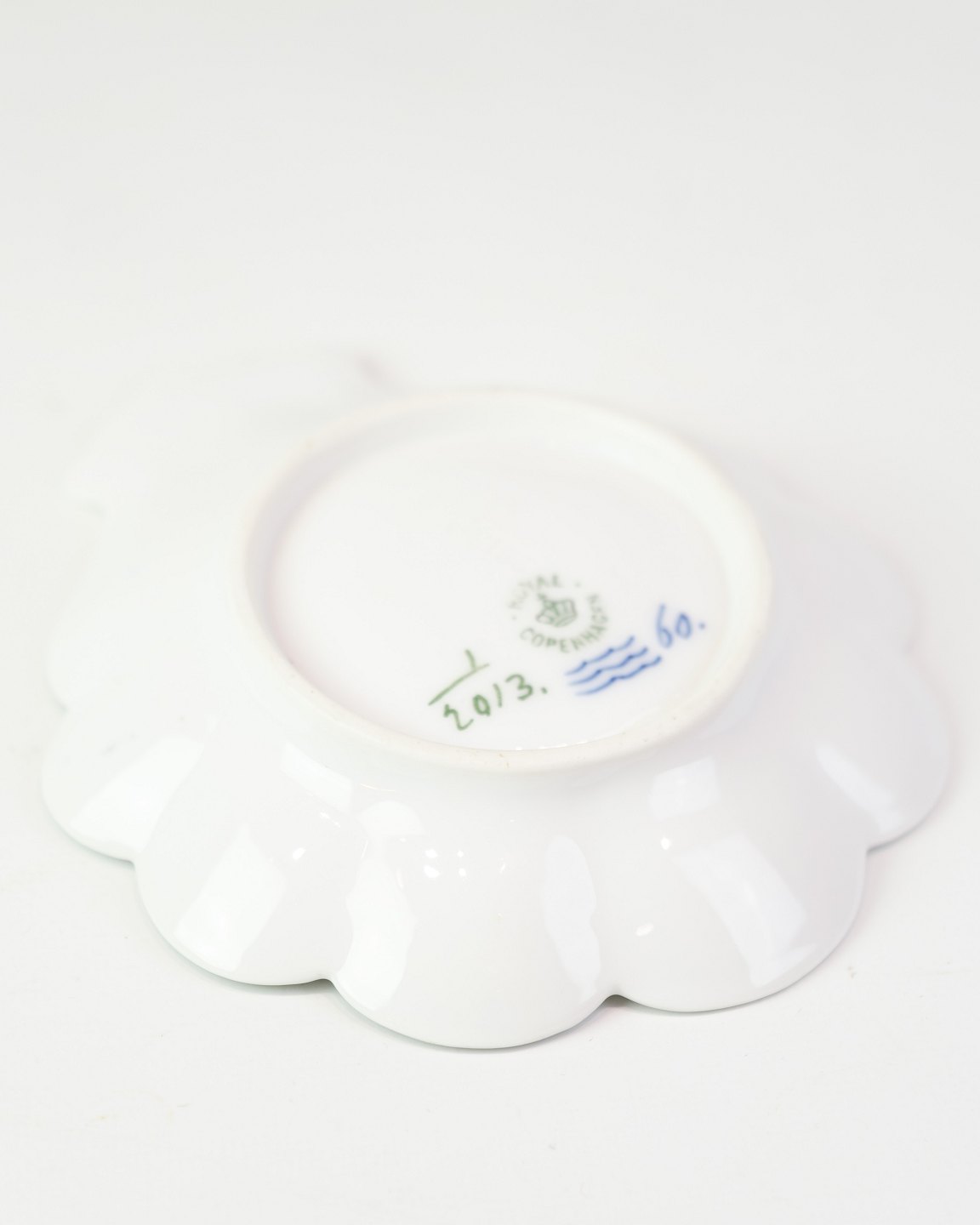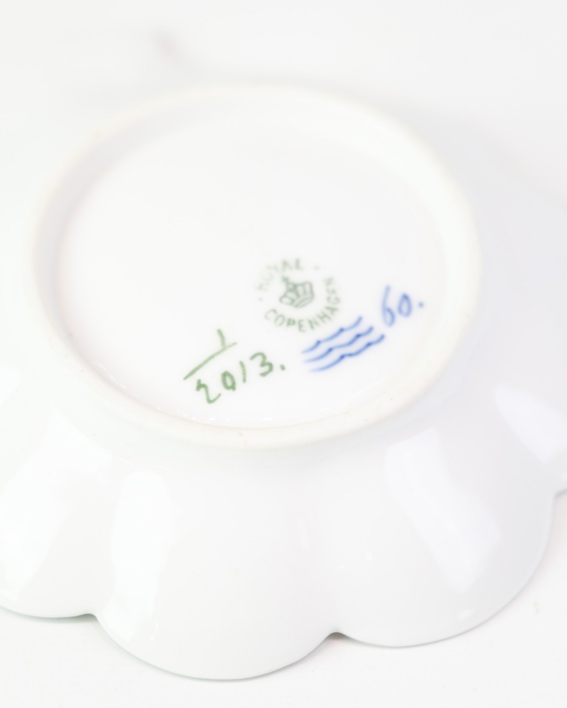 The dish in the classic blue-fluted pattern from Royal Copenhagen. This small serving bowl, model no. 2013, is hand-painted and dates from the period 1923–1935, which is confirmed by the stamp. The shape is slightly oval and has the characteristic blue-white porcelain.