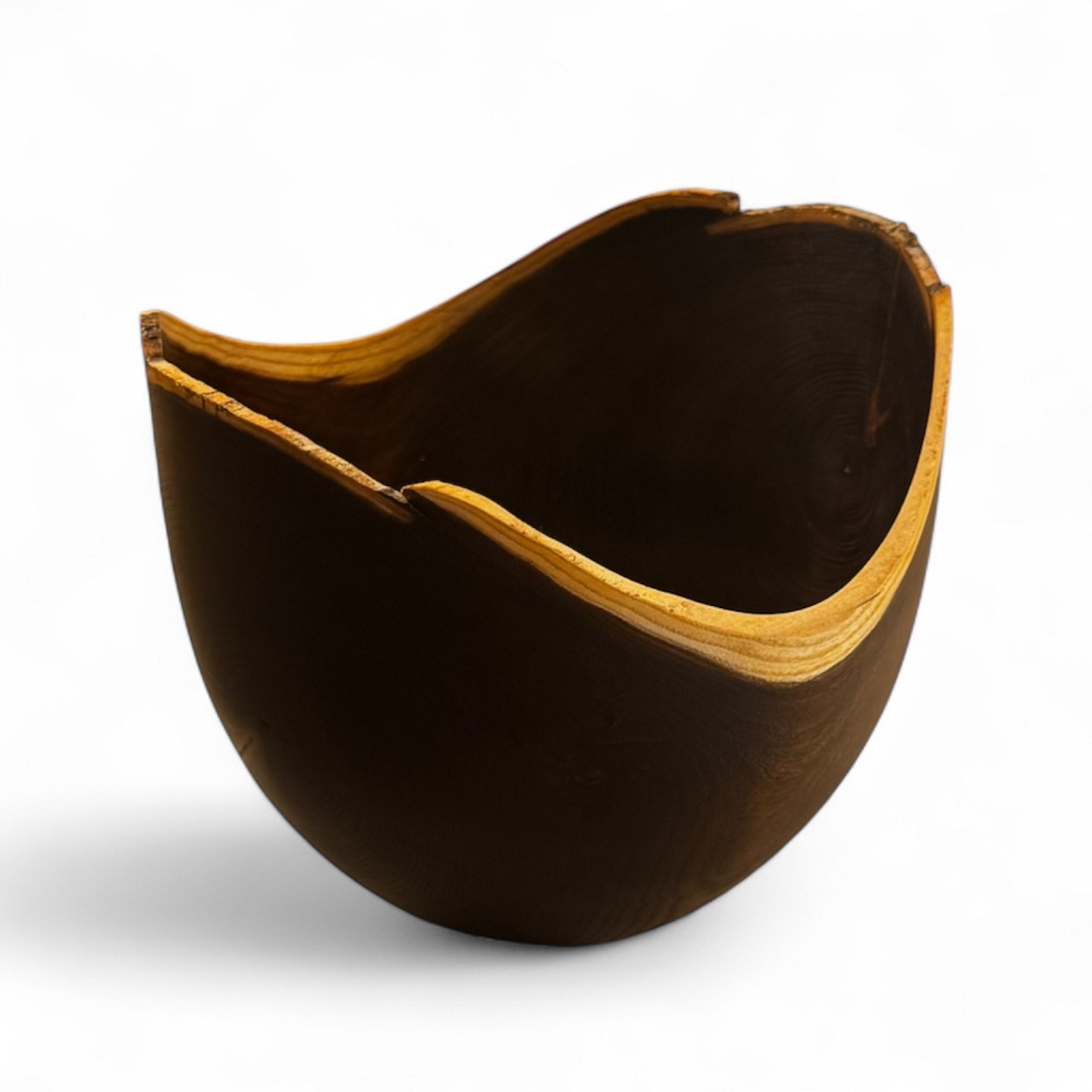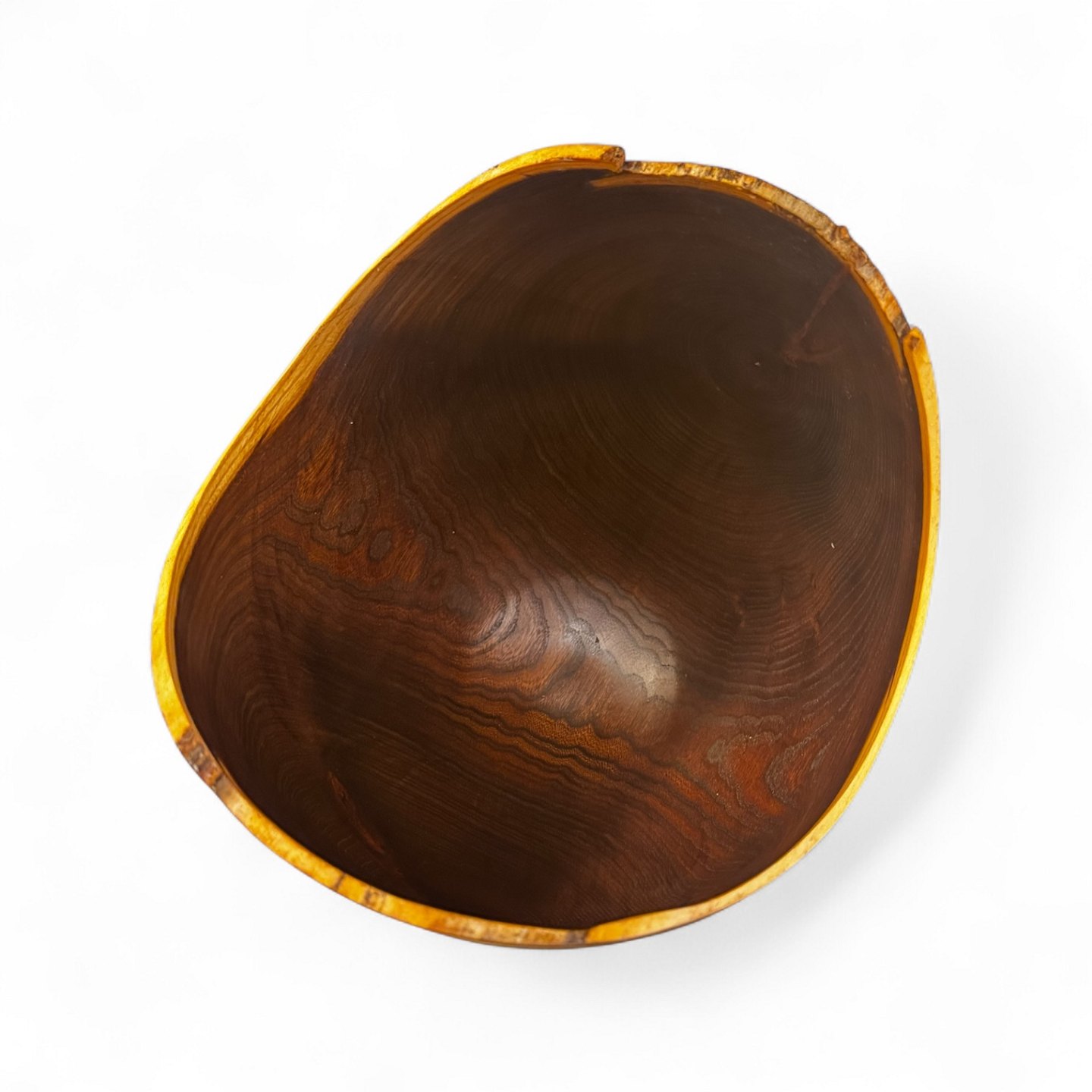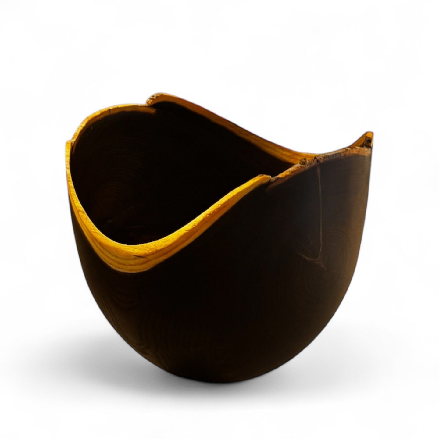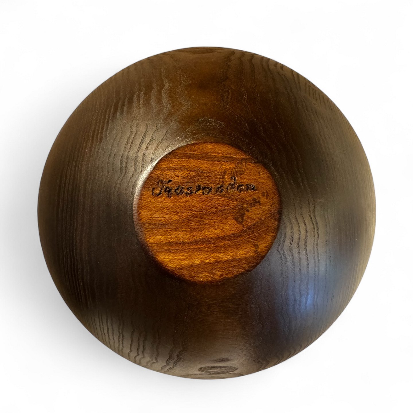 Hand-turned bowl in laburnum, made by the Bornholm woodturner Hans Henning Pedersen, signed at the bottom. The bowl has an organic shape with beautiful grain and naturally peeled edge.