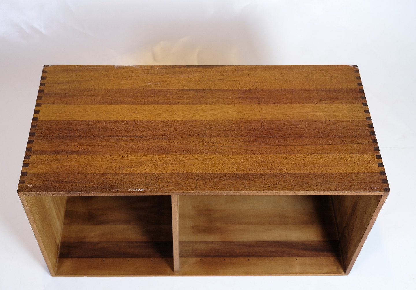 SoldBookcase in teak with mortise joints, Danish design from the 1960s. The bookcase is divided into two compartments and is well suited as both a wall-mounted unit or a standing module in a bookcase composition.