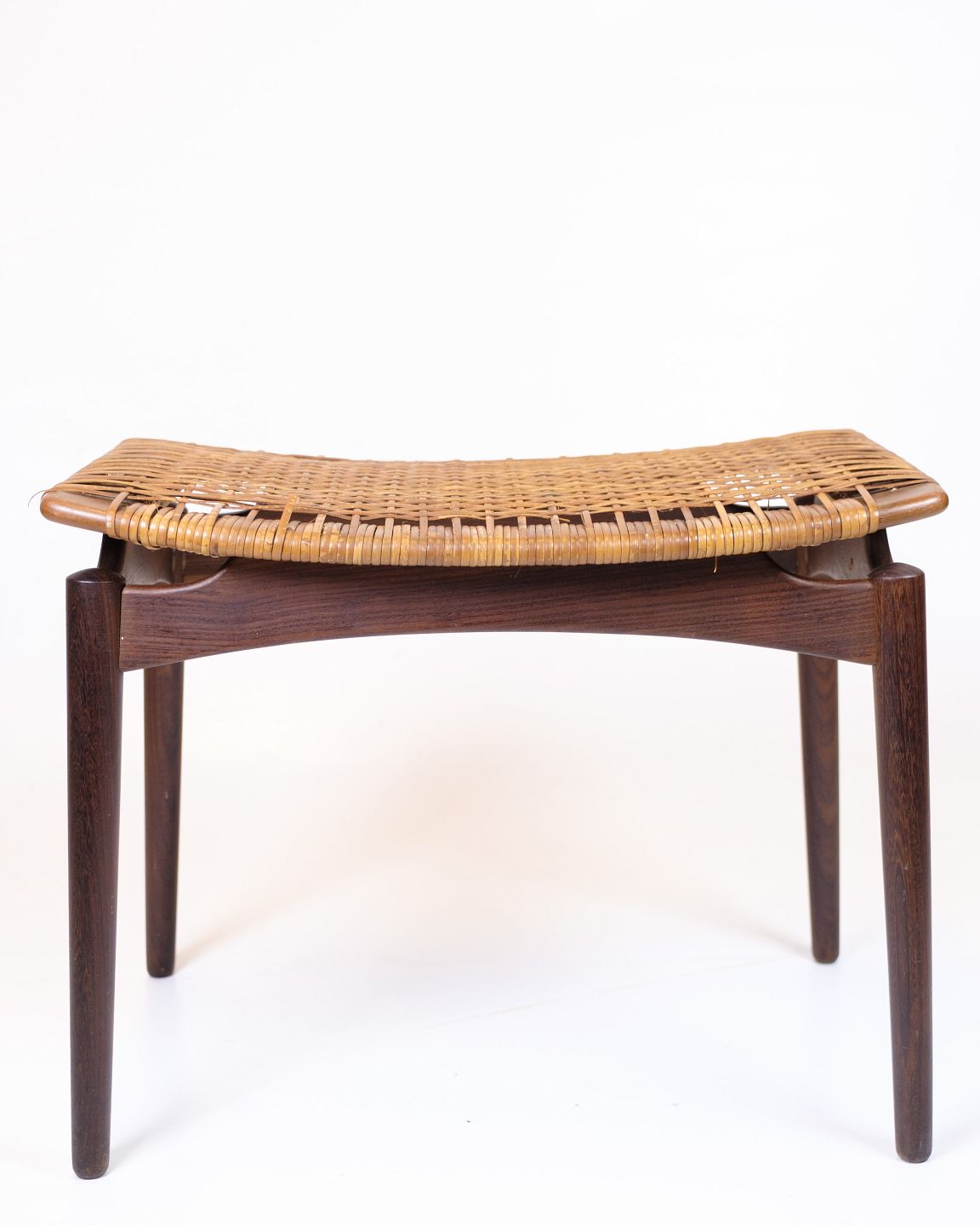 Teak wicker stool, designed by Sigfred Omann for Ølholm Møbelfabrik in the 1960s. Classic Danish design with hand-woven seat.
