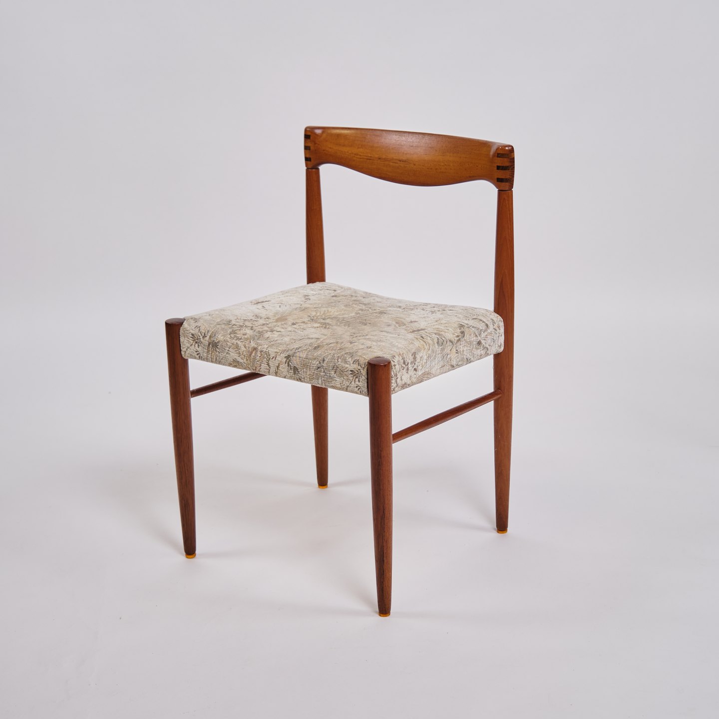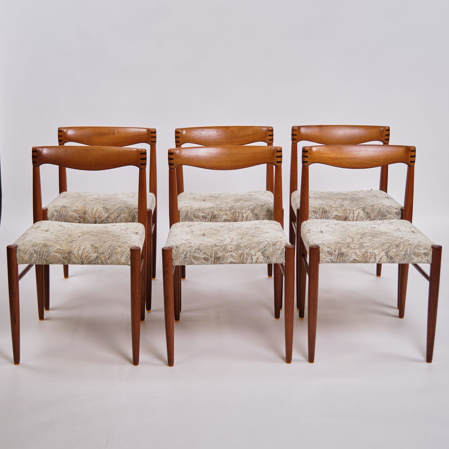 Set of six dining chairs by Henry W. Klein for Bramin. Teak and light upholstery. Denmark, 1960s. H: 75 cm, W: 48 cm, D: 43 cm, SH: 45 cm.
