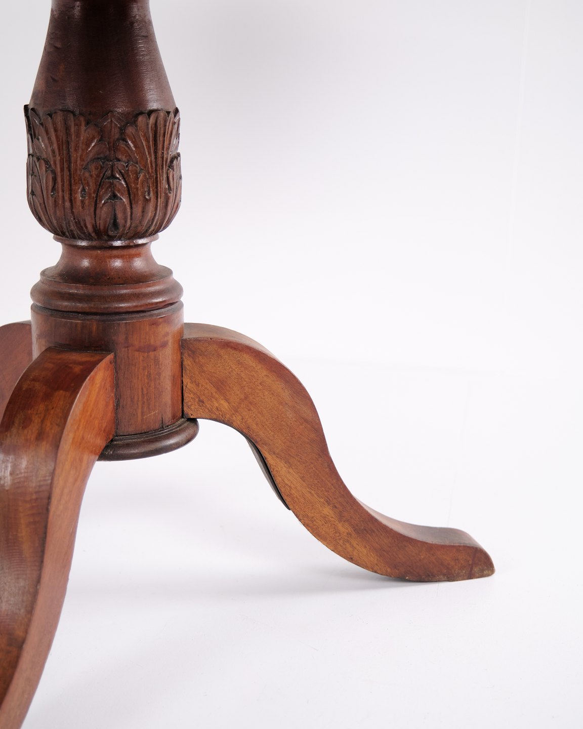 Entrance or lobby table from the 19th century, crafted in mahogany as a classic pedestal table with a round top. A decorative and period-characteristic piece suitable for hallways, lobbies, or living spaces. Solid wood and elegant craftsmanship.