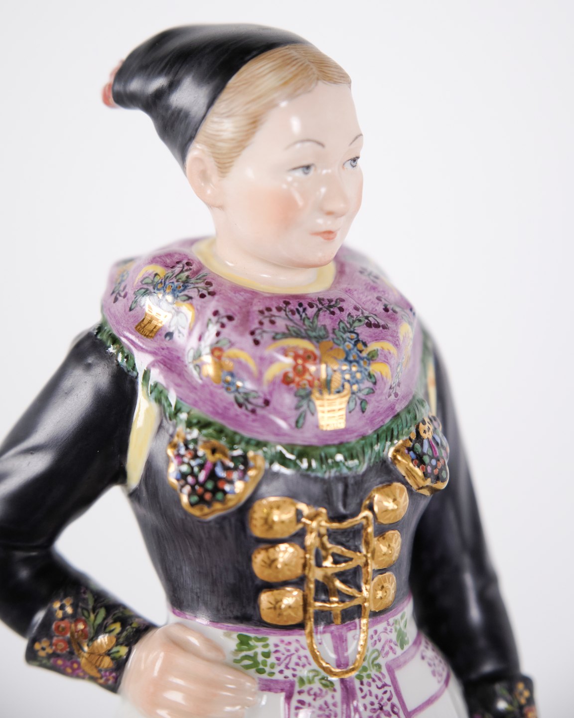 Figuren er udført i porcelæn med overglasurdekoration og fremstår som 1. sortering i hel og fin stand.