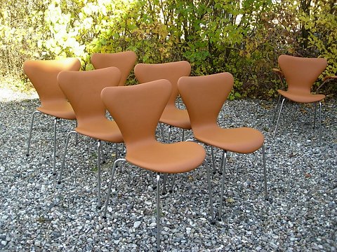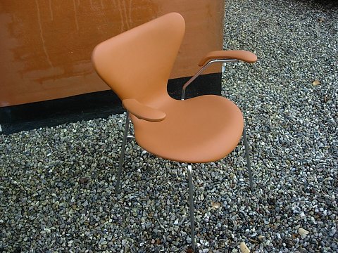 Arne Jacobsen 7´er stol model 3107 med armlæn i Lyse brunt skind