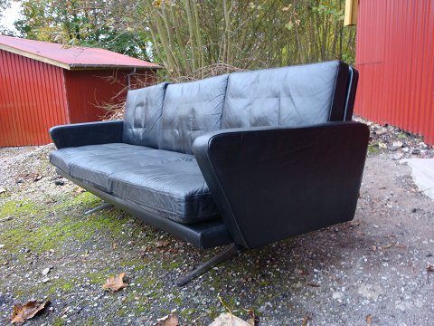 3 pers sort lædersofa med shakerben fra 1960 erne i fin stand 5000 m2 udstilling