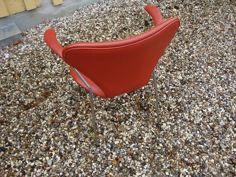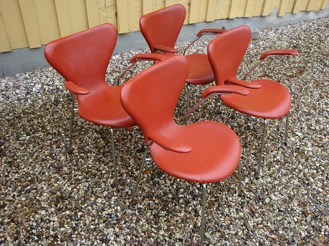 2 stk Arne Jacobsen syverstole med armlæn model 3107 i rødt skind