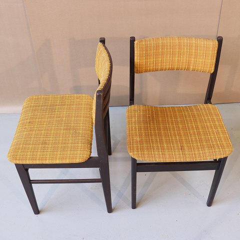 4 stole i bejdset bøg betrukket med stof, højde 80 cm, sædehøjde 46 cm,