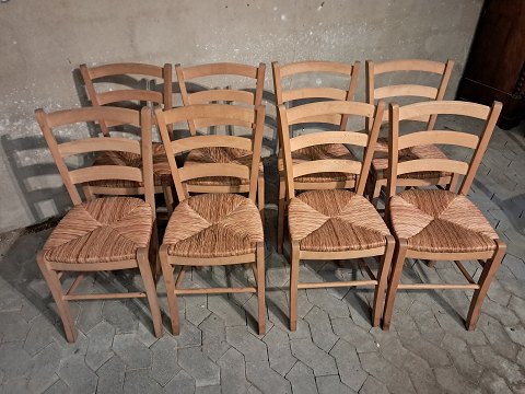 8 Stole i massivt bøgetræ med naturflet, af nyere dato.