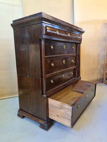 Dragkiste i fineret mahogni og bøgetræ, fra 1890erne.
