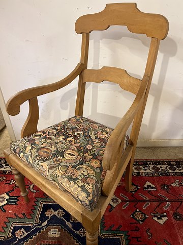 Armstol i bøgetræ med sæde betrukket i stof. Udført ca. 1870-1880.