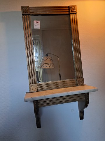 Guldmalet spejl med marmor hylde, fra 1920erne.