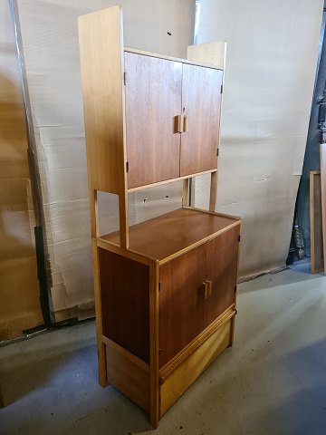 Reolsektion i massivt fyrretræ og fineret teaktræ, fra 1960erne.