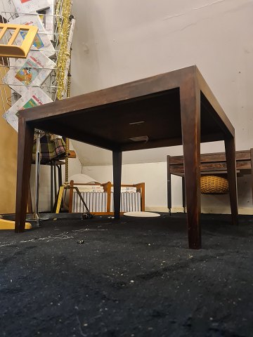 Kvadratisk Severin Hansen sofabord fra 1970´erne i finèret palisander. Fremstår pænt og velholdt uden nævneværdige brugsspor.