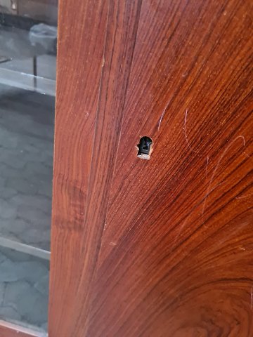 Dækketøjsskab fra 1940´erne finèret i blandede træsorter. (Palisander, birk, mahogni) Fremstår udmærket funktionsdygtigt og pænt for alderen. Dog med lettere overfladeridser på toppen og manglende nøglehulskrans. (billede)